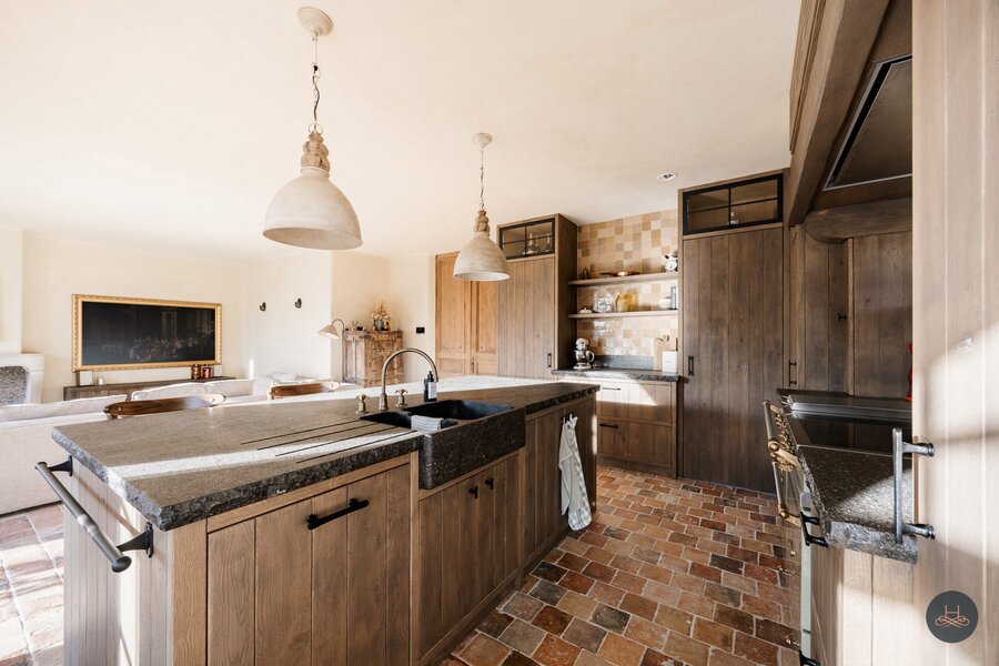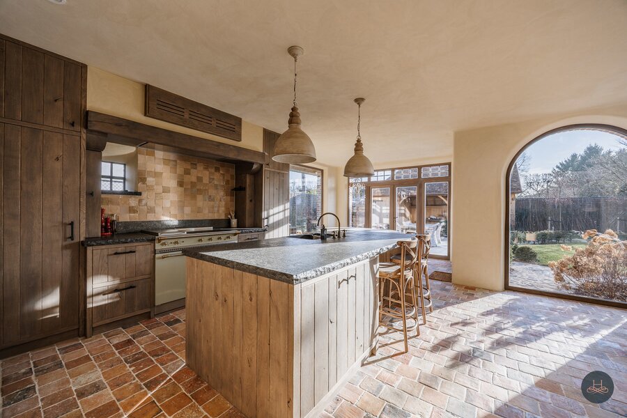 Het hart van de woning is ontworpen voor de ware fijnproever; het iconische Lacanche kookvuur vormt het gastronomische middelpunt van de keuken, terwijl de badkamer met naadloze Mortex en sanitair van Kenny & Mason een serene wellness-ervaring biedt. Achter deze esthetische pracht schuilt een indrukwekkend technisch vernuft: een geavanceerde warmtepomp, zonnepanelen en volledige vloerverwarming garanderen een optimaal en energiezuinig wooncomfort. Het resultaat is een uniek ensemble waar de charme van vroeger en de efficiëntie van morgen elkaar op het allerhoogste niveau ontmoeten.