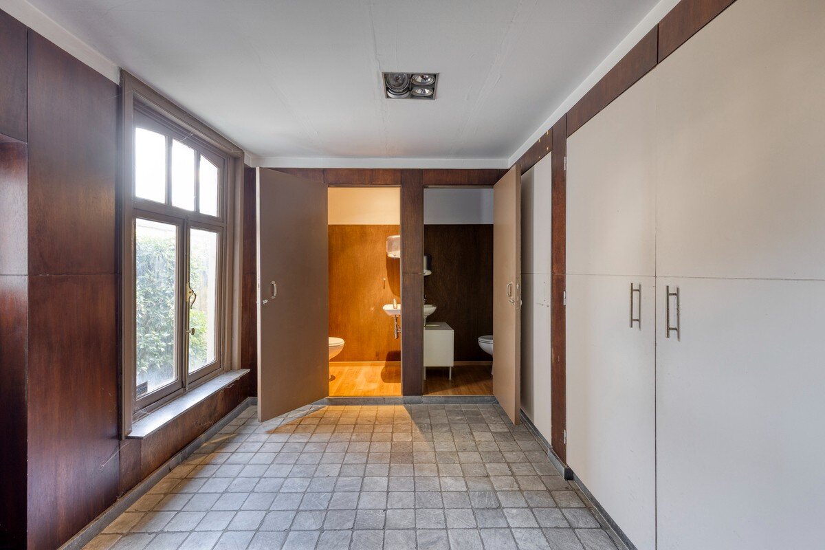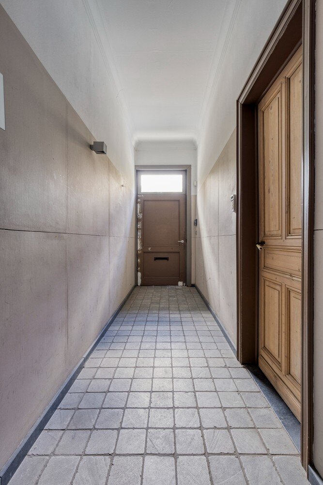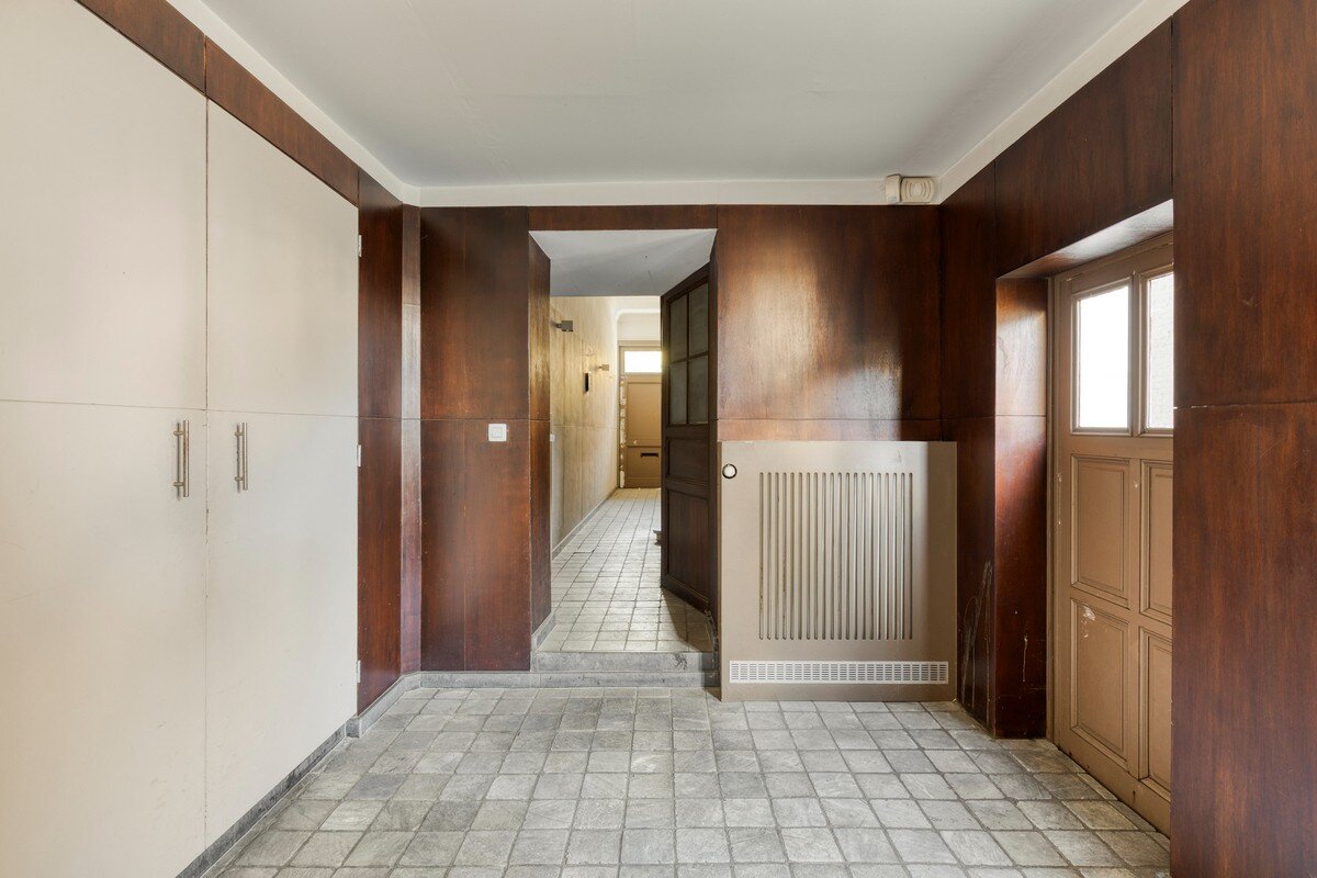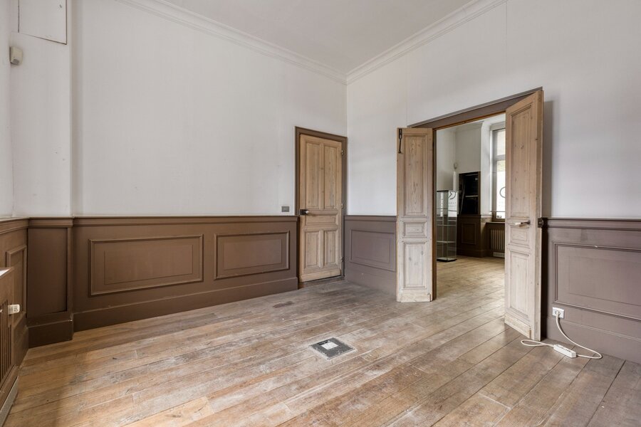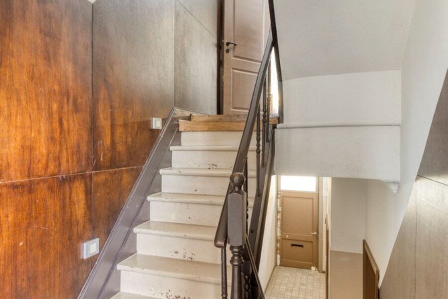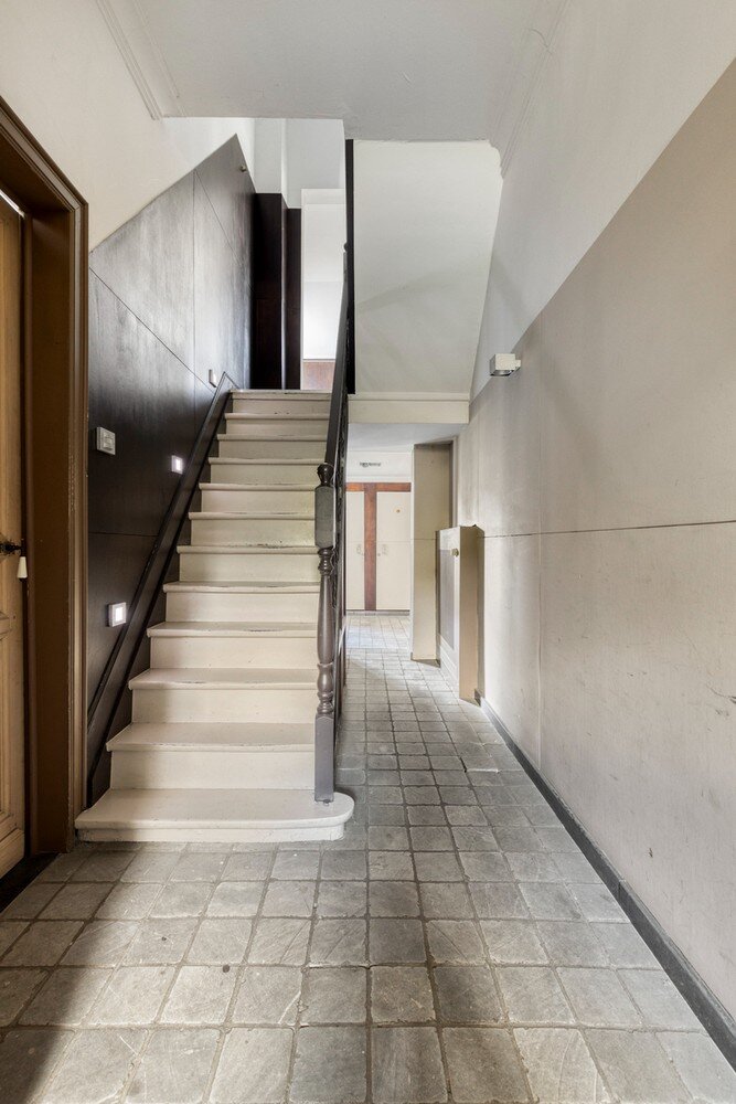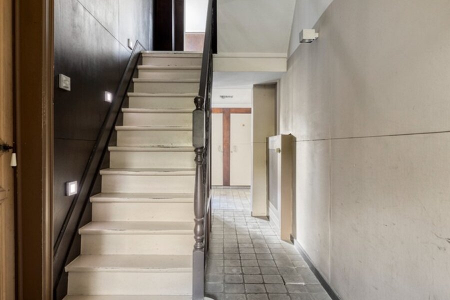 De originele indeling werd door de jaren heen gerespecteerd waardoor er heel wat mogelijkheden zijn om de ruimtes verder in te richten en af te werken naar eigen smaak en keuze. De inkomhal geeft toegang tot een dubbele sfeervolle woonkamer met aansluitend aan de achterzijde ruimte om een keuken te installeren, die uitgeeft op de stadstuin.