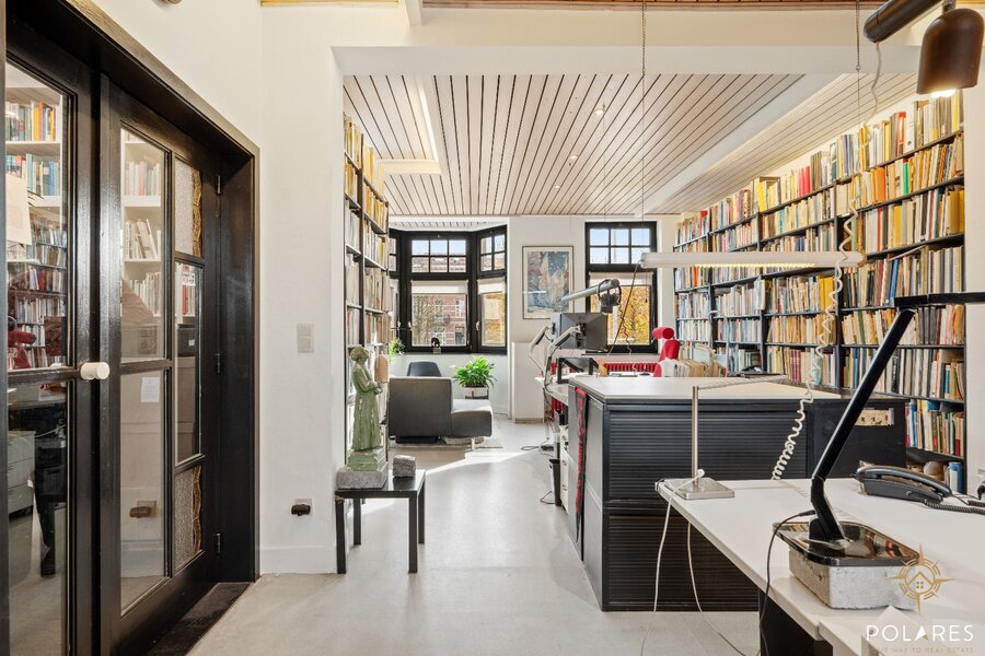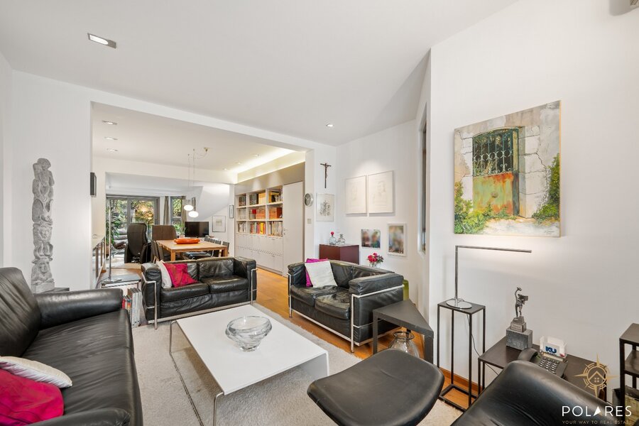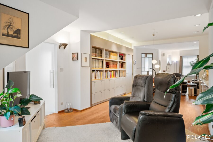 Bij het binnenkomen word je verwelkomd in een charmante inkomhal die meteen de toon zet: stijlvolle details en een gevoel van ruimte. De ruime woonkamer strekt zich uit over de volledige diepte van de woning en ademt gezelligheid. Grote raampartijen en een nieuwe dakkoepel boven de traphal zorgen voor een overvloed aan natuurlijk licht en benadrukken de elegante art-Deco architectuur.