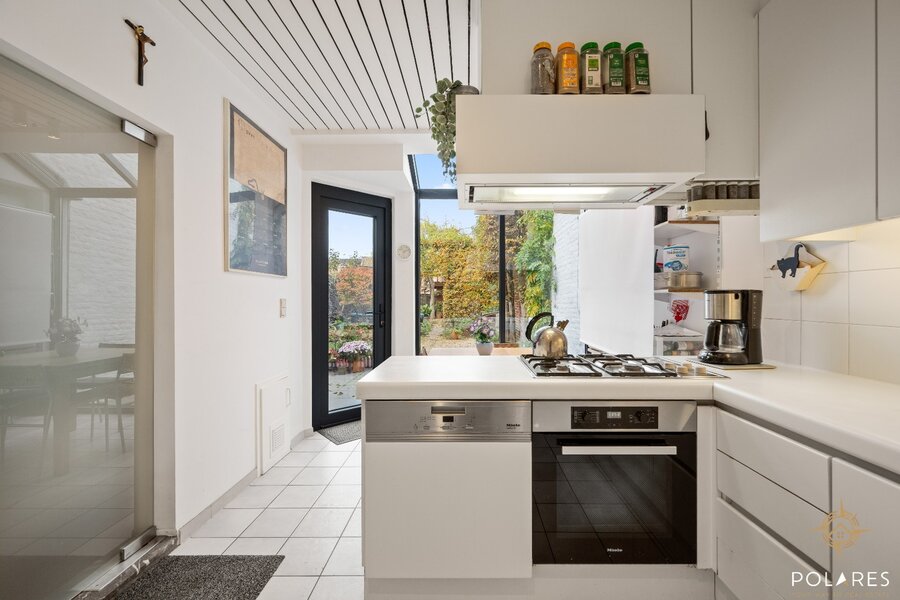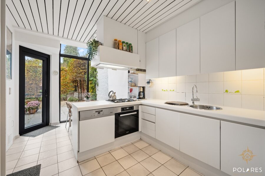 Aansluitend vind je de volledig ingerichte keuken met eetruimte, die uitgeeft op een gezellige en mooi ontworpen stadstuin. Een apart gastentoilet vervolledigt het gelijkvloers.