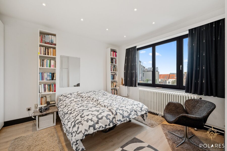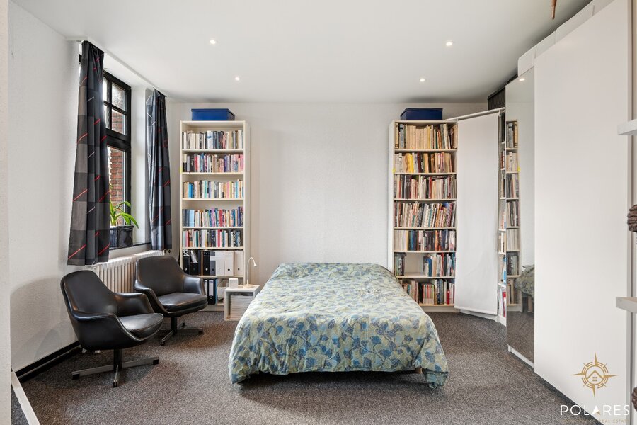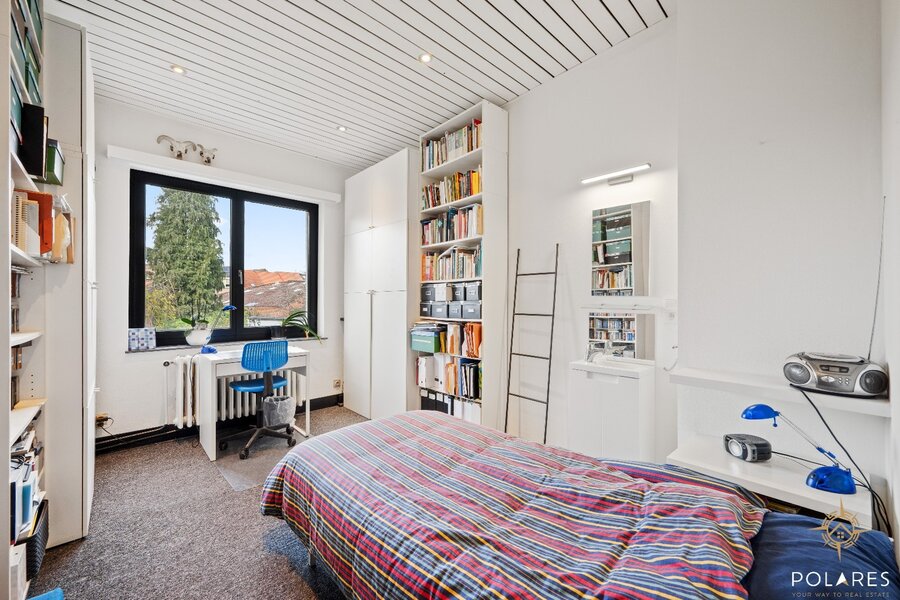 De tweede verdieping heeft twee ruime slaapkamers en een zopas vernieuwde badkamer, uitgerust met inloopdouche, dubbele wastafel en toilet. Aan de voorkant van het huis bevindt zich de masterbedroom met toegang tot een loggia en zicht op de Naamsevest.