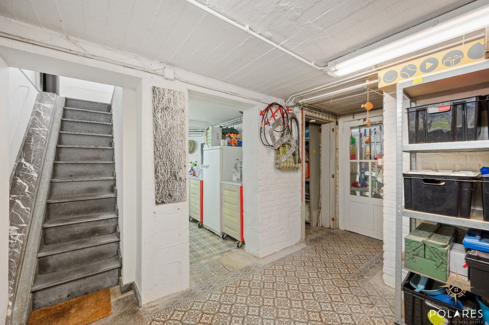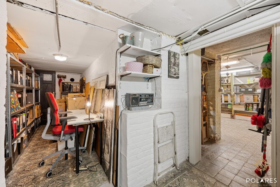 De mooi betegelde kelderverdieping biedt meerdere praktische ruimtes, ideaal als wasplaats of extra opslagruimte.