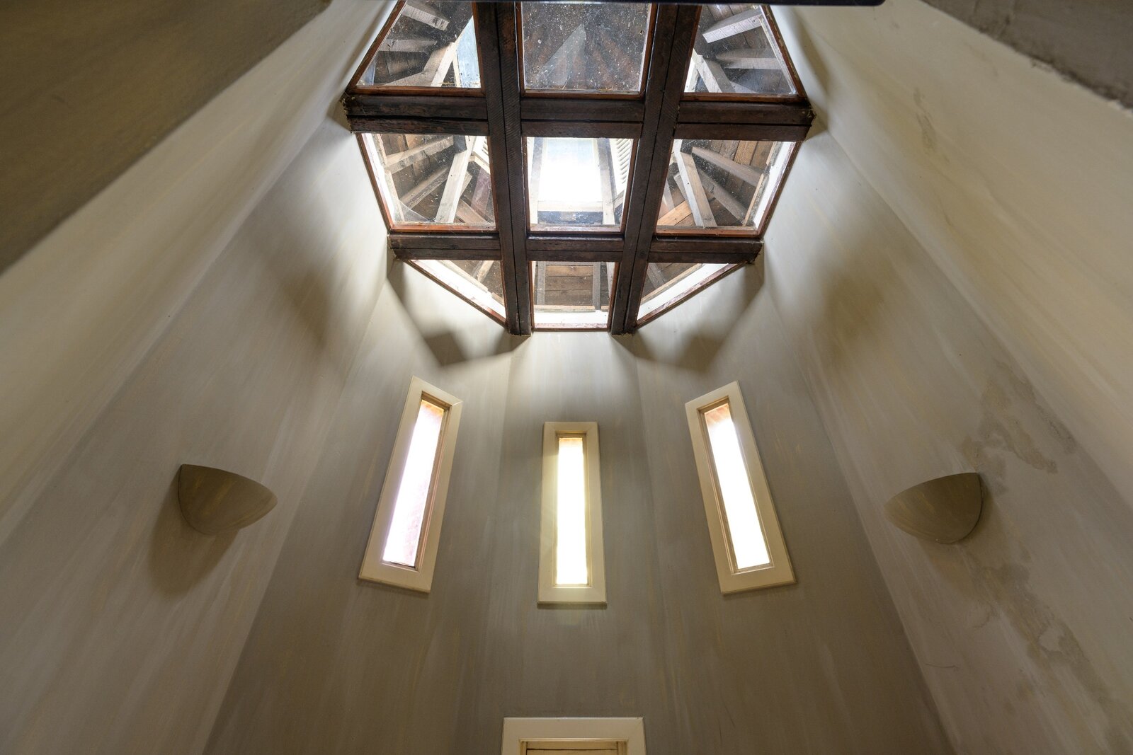 De tweede verdieping bereikt men via dezelfde trap, dit maal met uitzicht tot in de nok van het torentje waarin de trap zich bevindt. Op deze verdieping treffen we nog 2 ruime slaapkamers aan, alsook nog een praktische bergruimte.