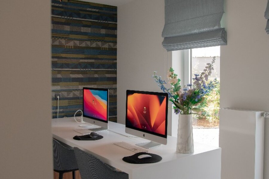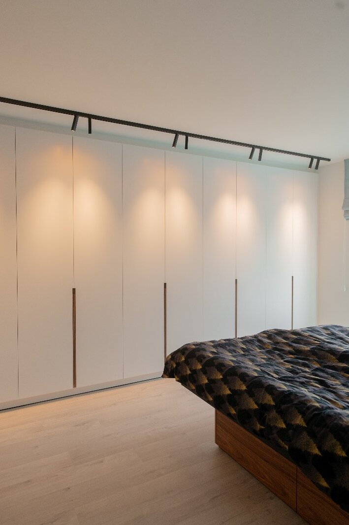 Verder beschikt het appartement over twee slaapkamers, waarvan één momenteel ingericht is als bureau of gastenkamer. De master bedroom omvat een stijlvol geïntegreerde inbouwdressing. Een praktische wasruimte/berging is discreet geïntegreerd in het totaalconcept.