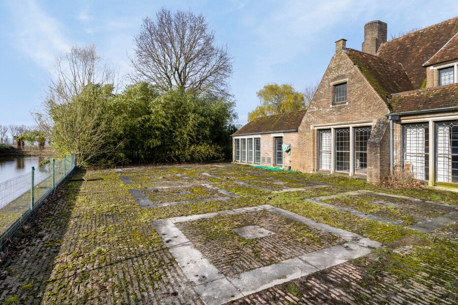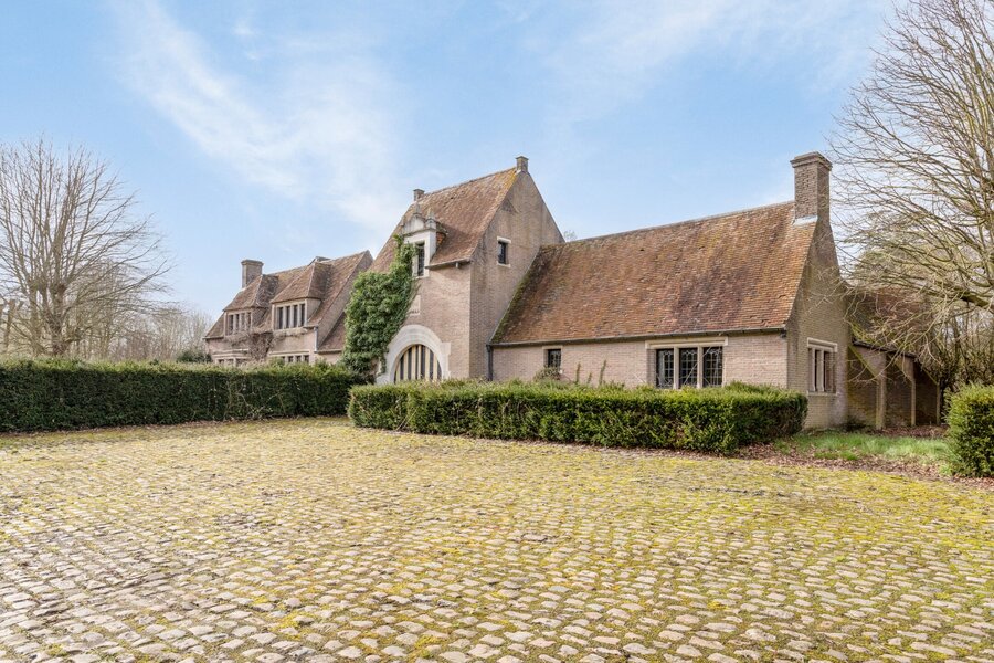 We zijn dan ook bijzonder trots u deze verborgen parel te mogen aanbieden op de vastgoedmarkt. Het landgoed strekt zich uit over een totaaloppervlakte van maar liefst 1,5ha. Aan straatzijde ervaren we een uniek parkzicht opgebouwd uit 3 rijen met volwassen platanen. De oprijlaan in bruine kasseien (kletsekoppen: ca. 350 jaar oud en afkomstig van de oude baan uit Boezinge) voorzien van smeedijzeren hek (met camerabewaking) brengen u doorheen een rij platanen tot op het binnenplein voor het landgoed.