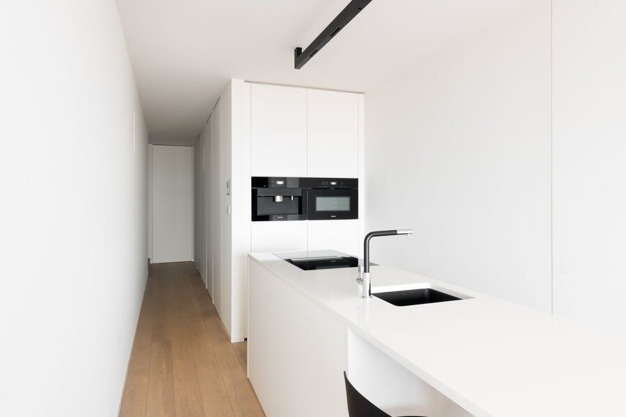 Het appartement beschikt over een ruime woonkamer met een open, volledig ingerichte moderne keuken, alsook een gastentoilet. De twee slaapkamers die volledig ingericht zijn met ingebouwde kasten, alsook de stijlvolle badkamer bieden rust en comfort.