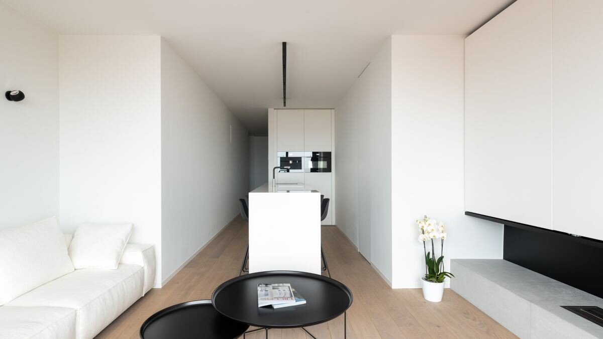 De lichtrijke woonkamer geeft uit op zeezicht, waar er in alle rust kan ontspannen worden. De combinatie van de hoogwaardige afwerking, de moderne inrichting en de unieke ligging op het gelijkvloers maakt dit appartement ideaal als hoofdverblijfplaats of tweede verblijf.