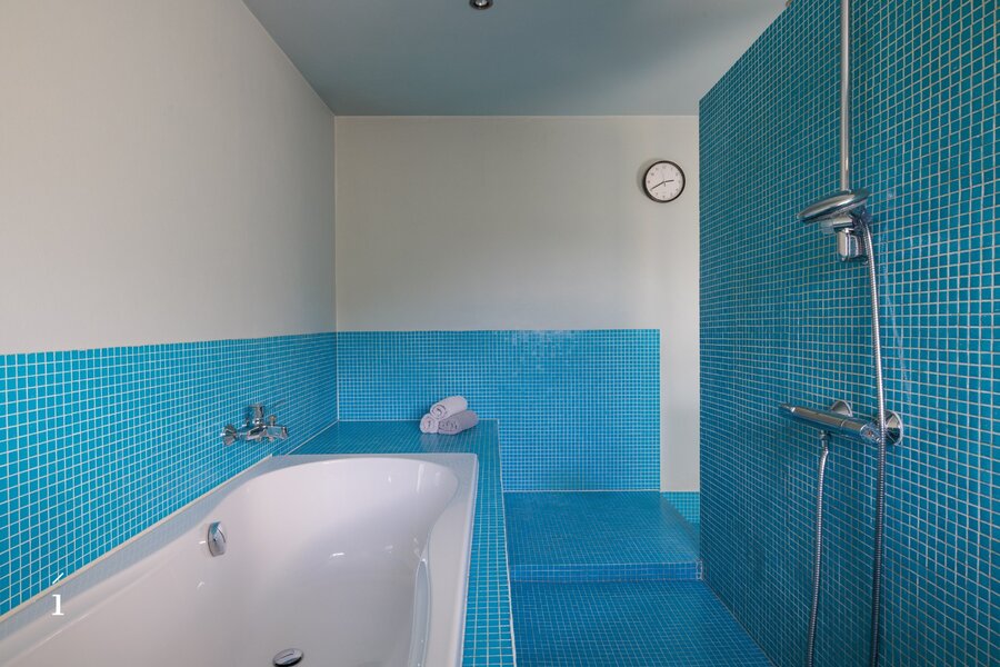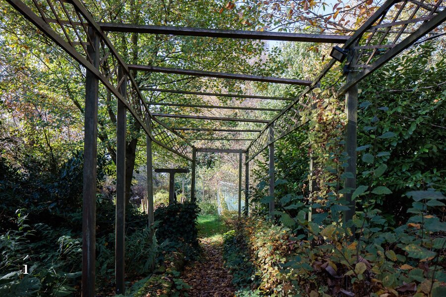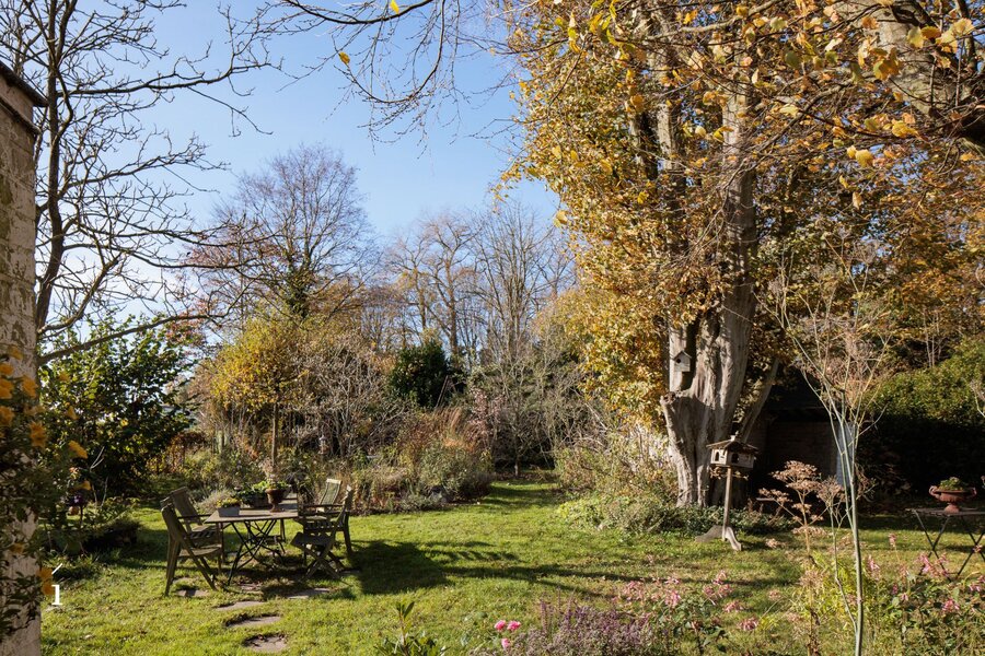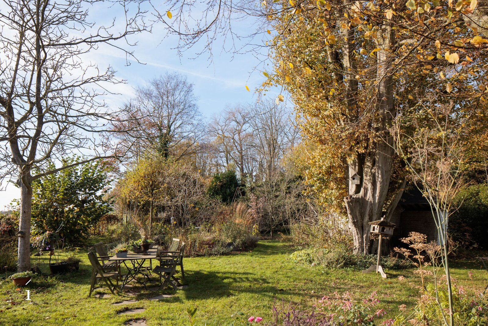 Aan de voorzijde ligt een boomgaard, terwijl de achtertuin natuurlijk werd aangelegd en naadloos opgaat in het omringende landschap. Hier geniet men in alle privacy van rust, zon en groen.