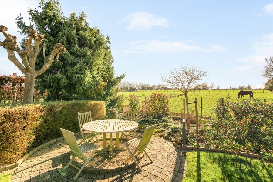 Buiten geniet je van een volledig aangelegde, zuidgerichte tuin met terras genietend van een prachtig open zicht.