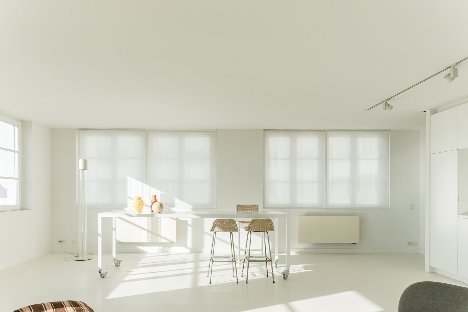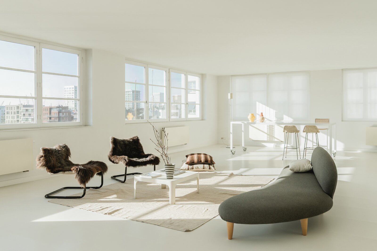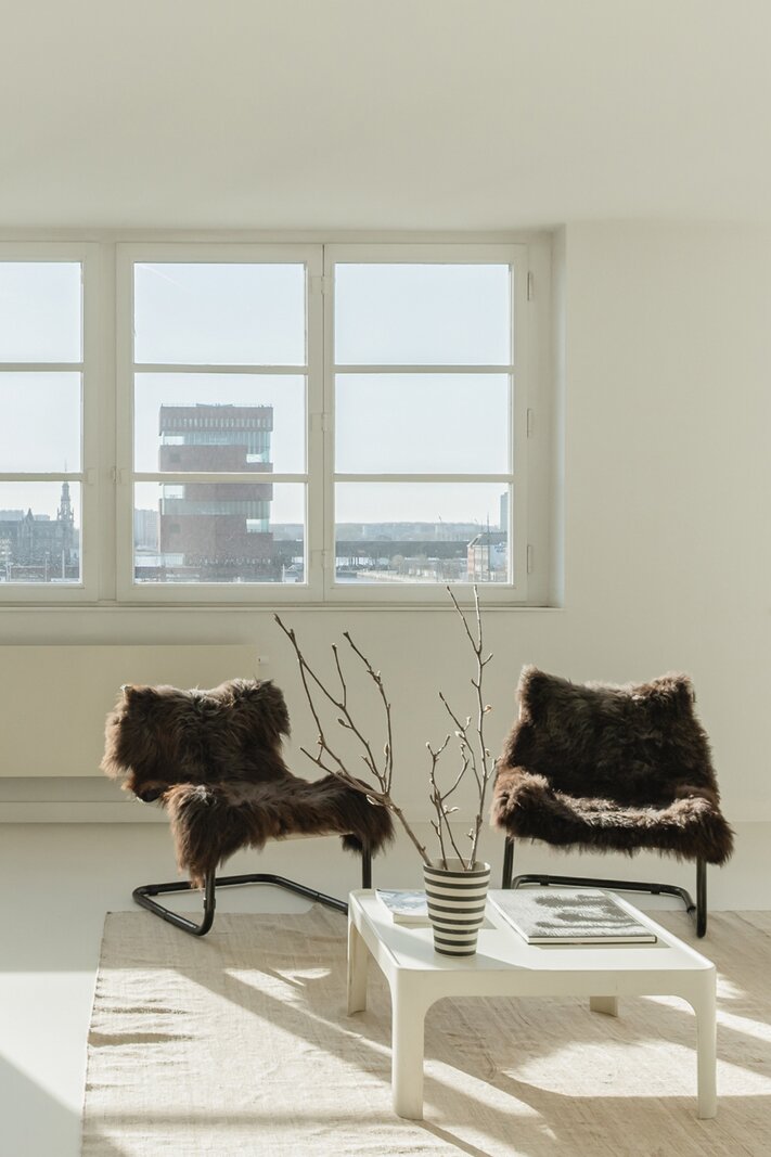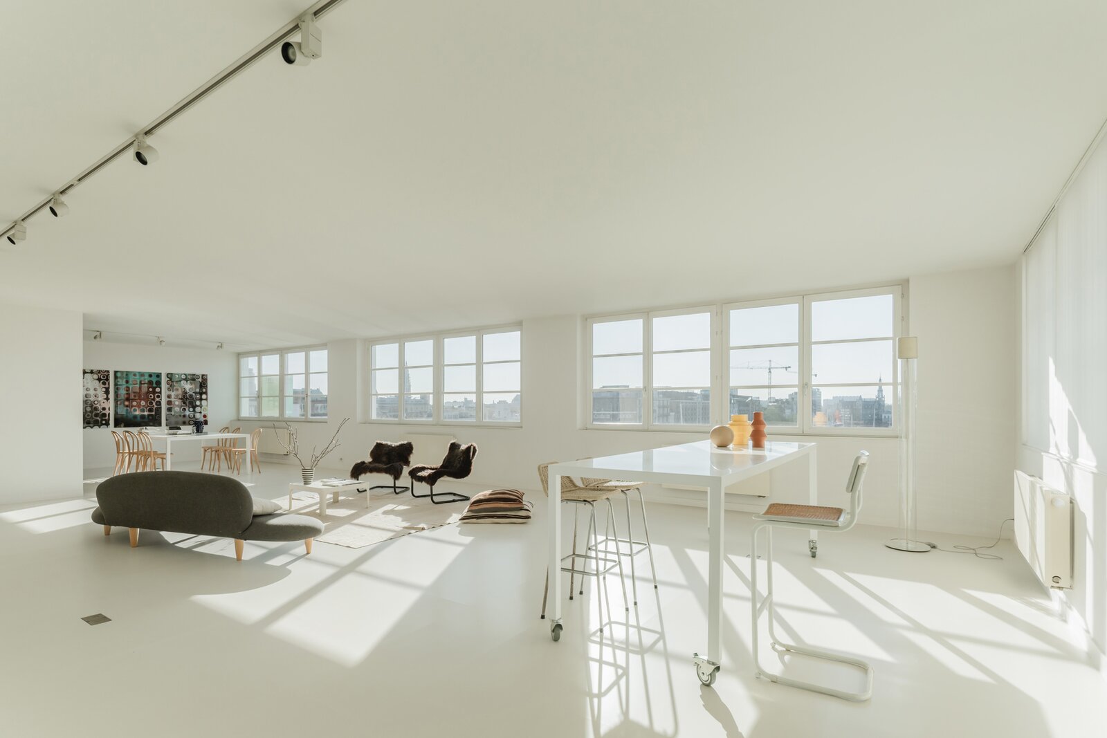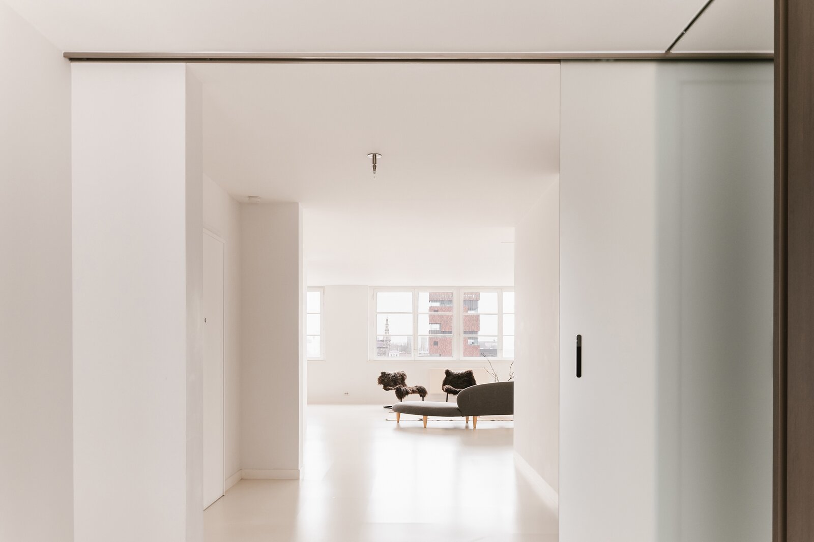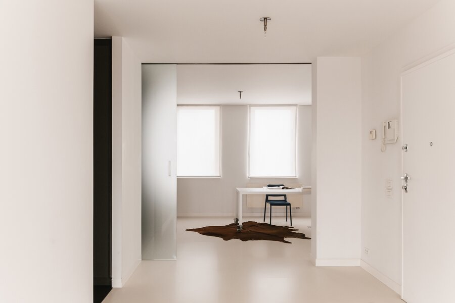 Sommige plekken zijn geen woningen, maar leefervaringen. Deze flat, ontworpen door Christine Conix en gelegen in het prestigieuze Koninklijk Entrepot, is precies dat: een meesterlijk uitgezuiverde ruimte waarin licht, stilte en uitzicht centraal staan.