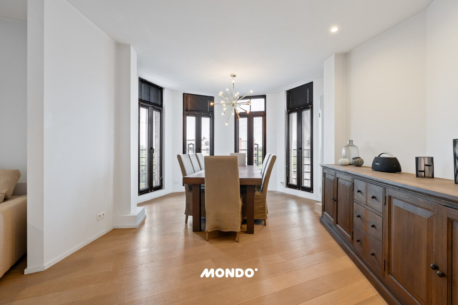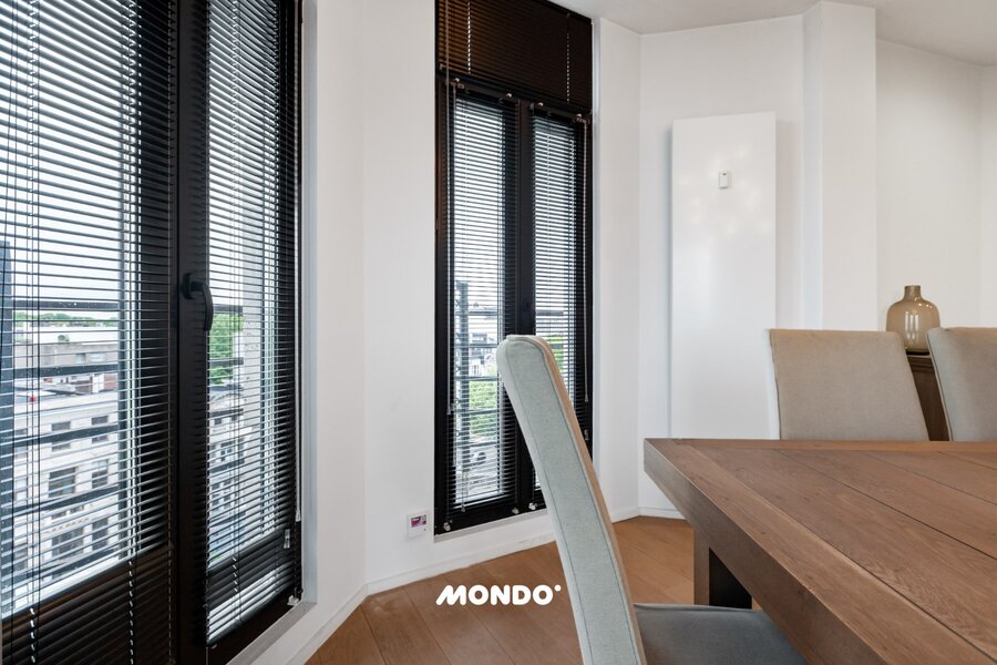 Het volledige appartement is tot in de puntjes afgewerkt met warme eiken parketvloeren en beschikt over geïntegreerde airconditioning voor optimaal comfort.