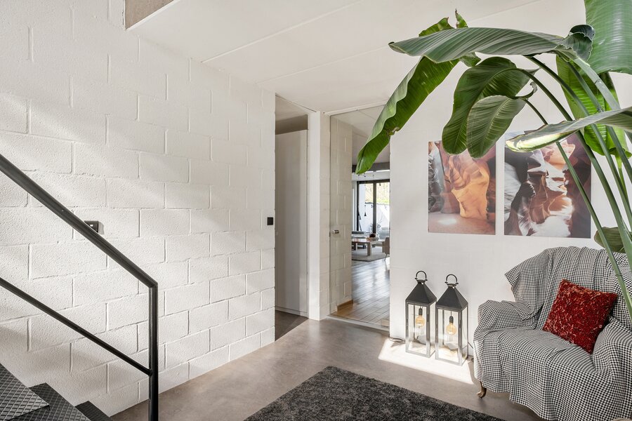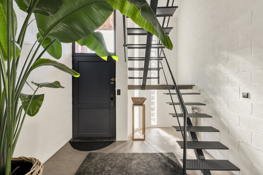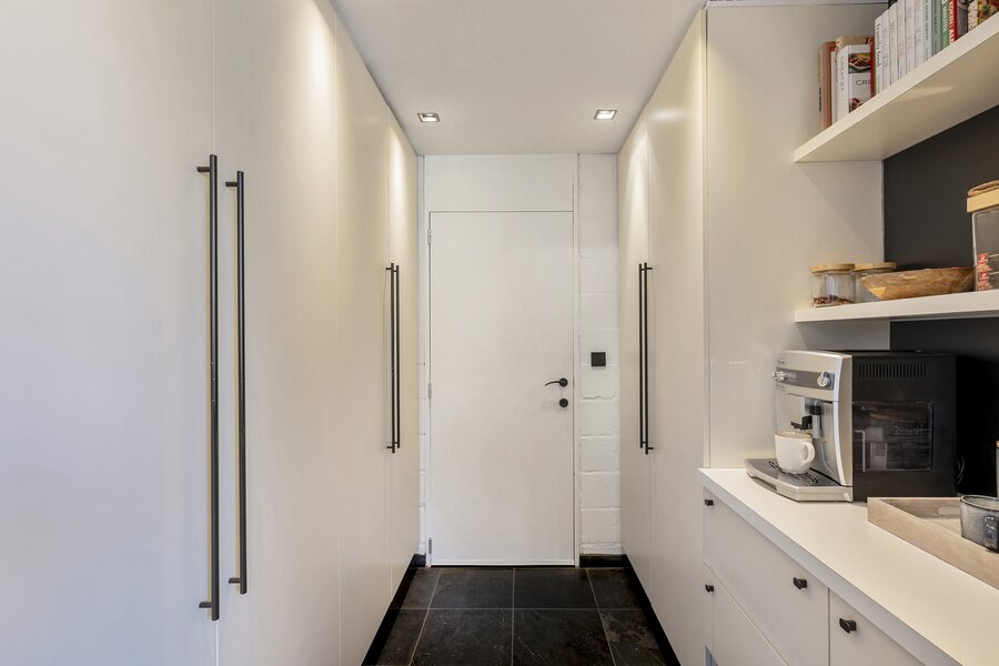 - Een ruime inkomhal met ingemaakte kasten en gastentoilet
