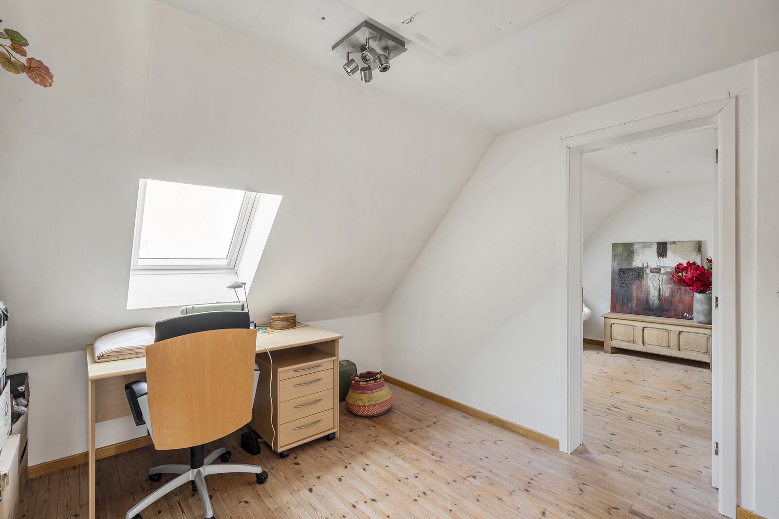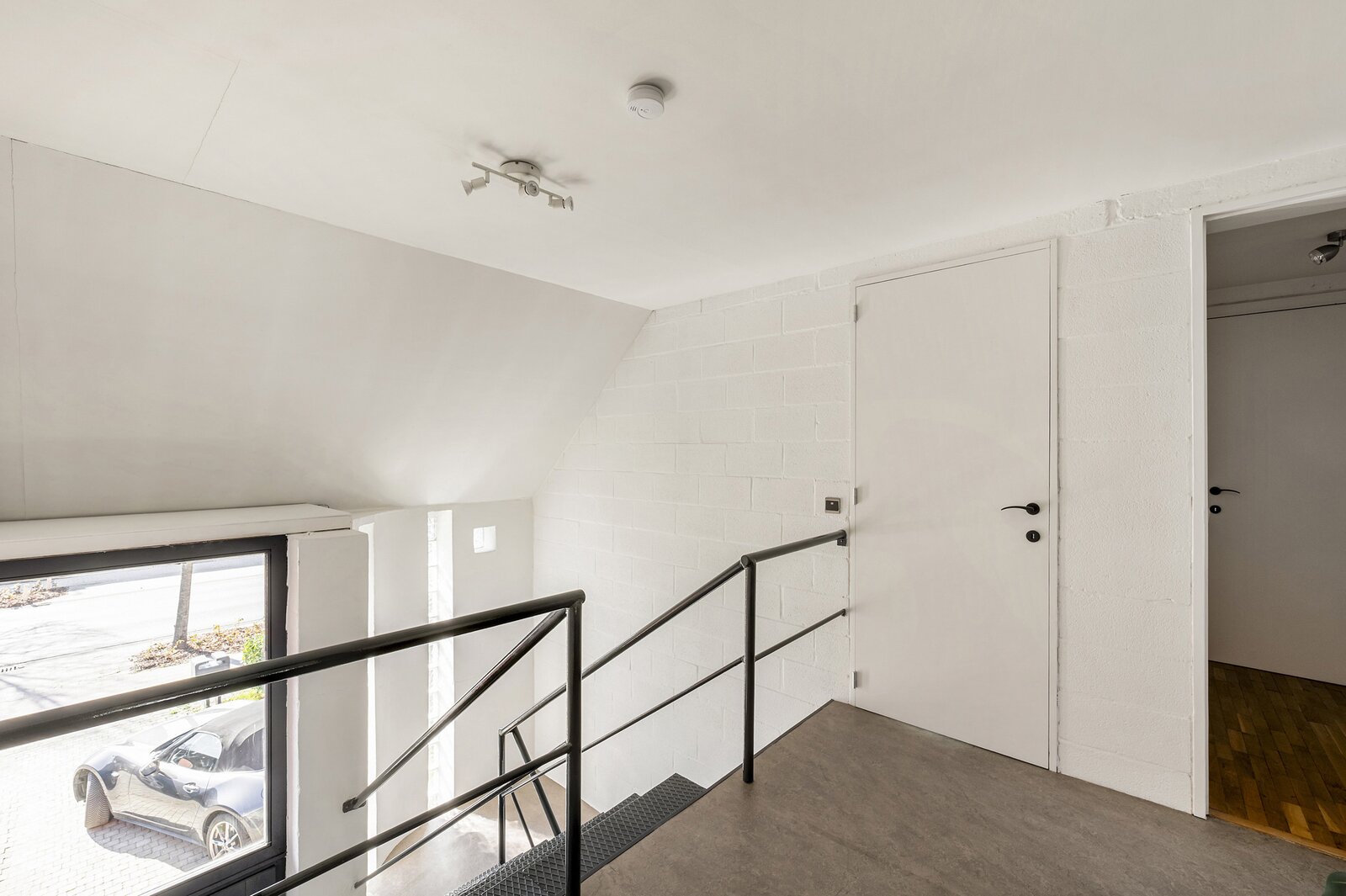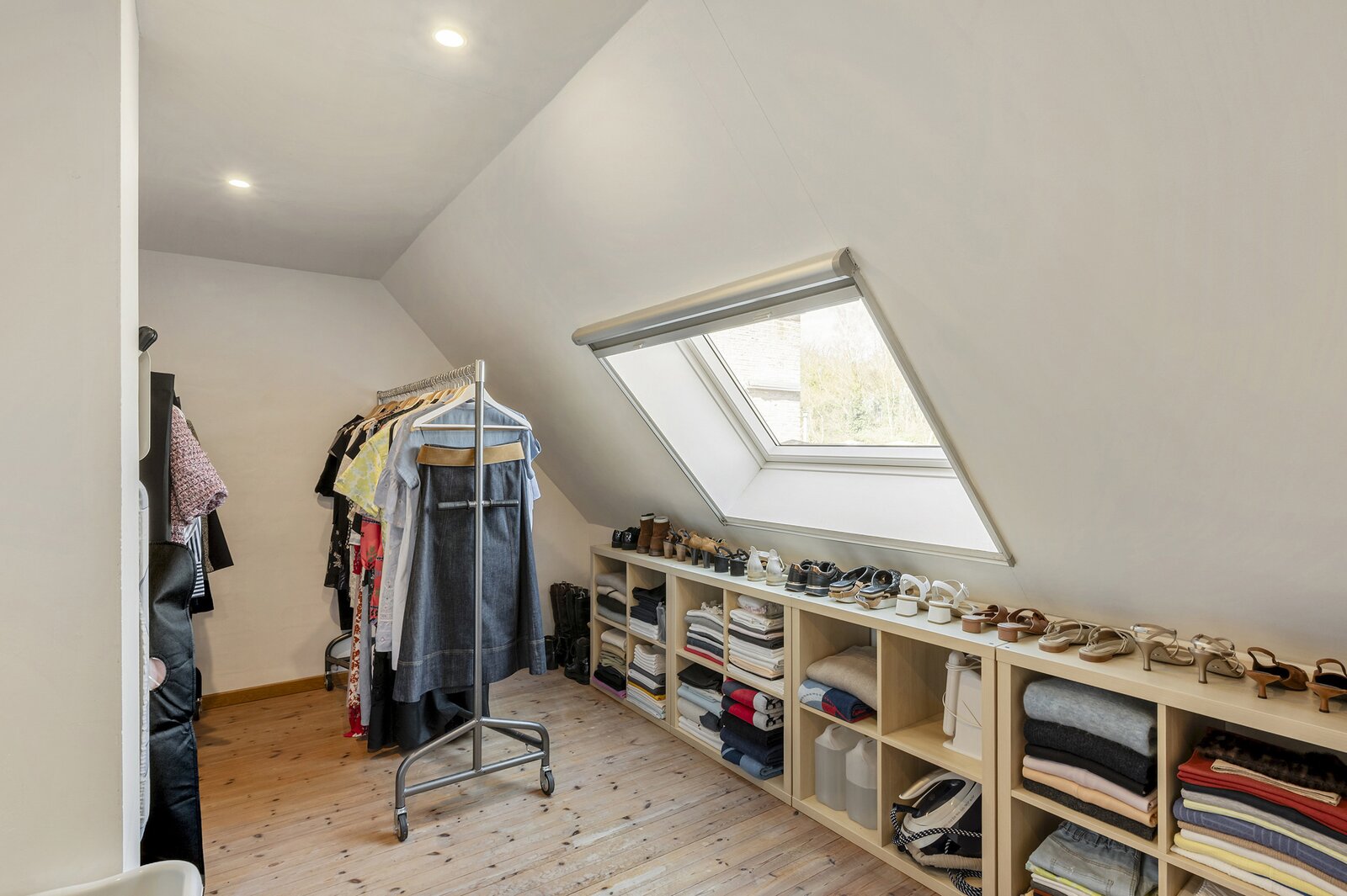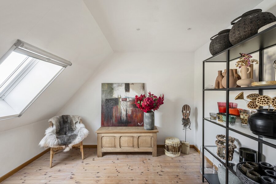 - Een zolderluik (vlizotrap) naar ruime zolderberging
