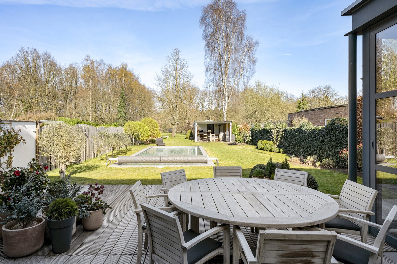 - Een gemakkelijk en onderhoudsvriendelijke tuin, volledig omheind