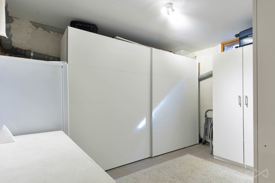 De woning beschikt over een ingerichte kelder, onderverdeeld in compartimenten. Deze ruimtes bieden uitstekende opslagmogelijkheden en kunnen tevens dienst doen als hobbyruimte of extra bergruimte.