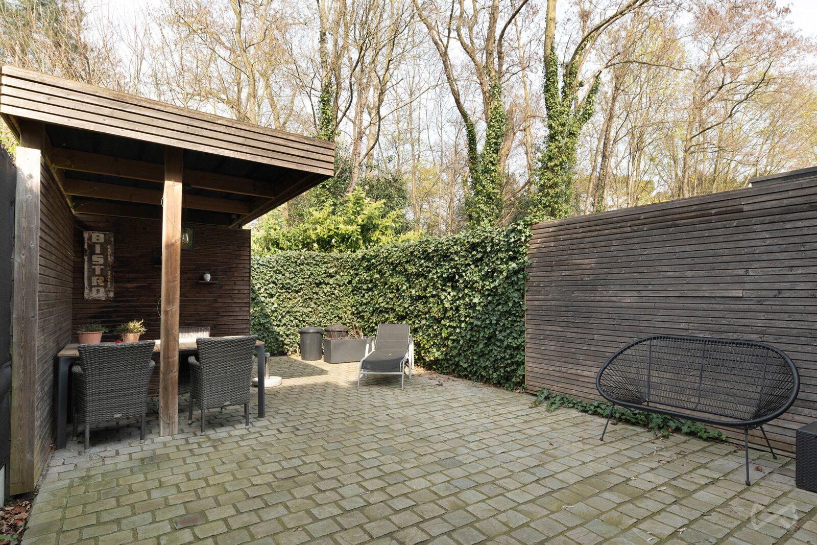 Aan de achterzijde van de woning bevindt zich een aangenaam terras met optimale lichtinval, waar u in alle rust kan genieten van zonnige dagen. Het aanwezige tuinhuis is voorzien van water en elektriciteit, wat extra functionaliteit biedt als fietsenberging of hobbygebruik.