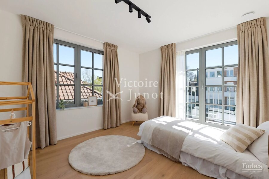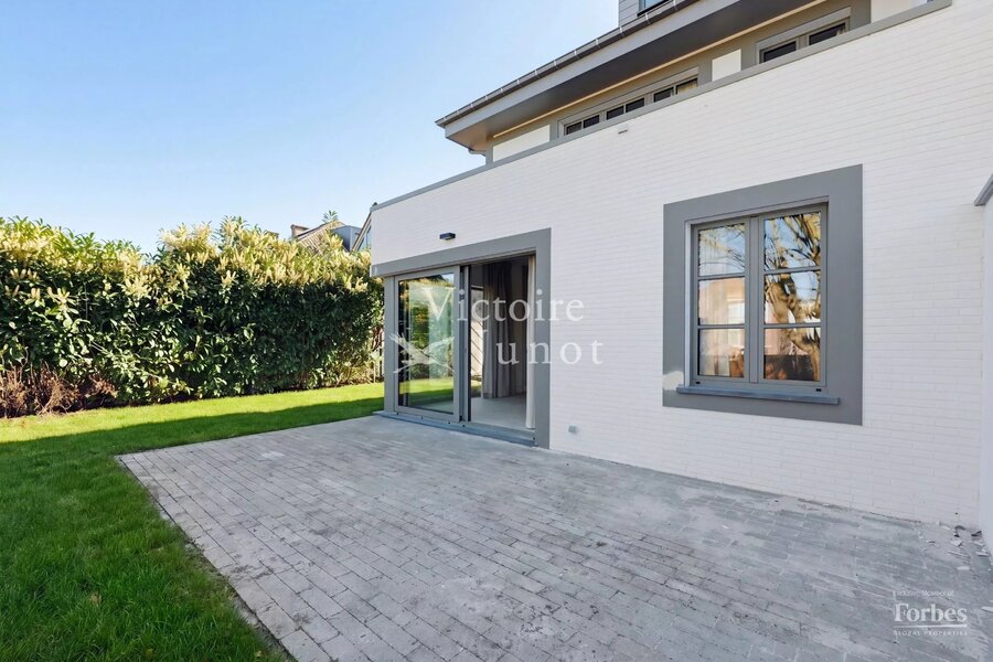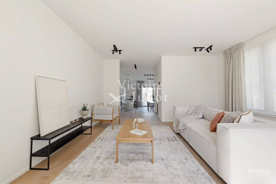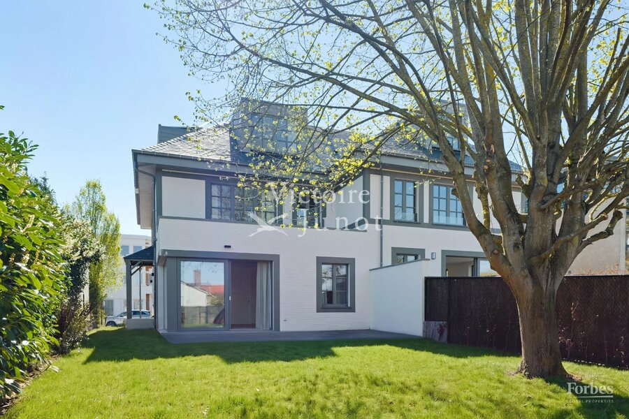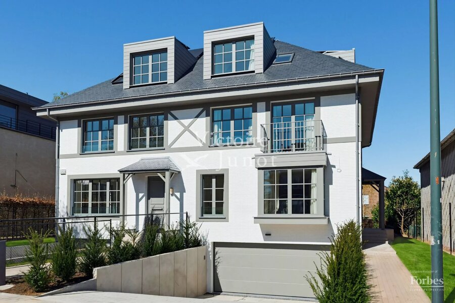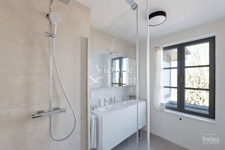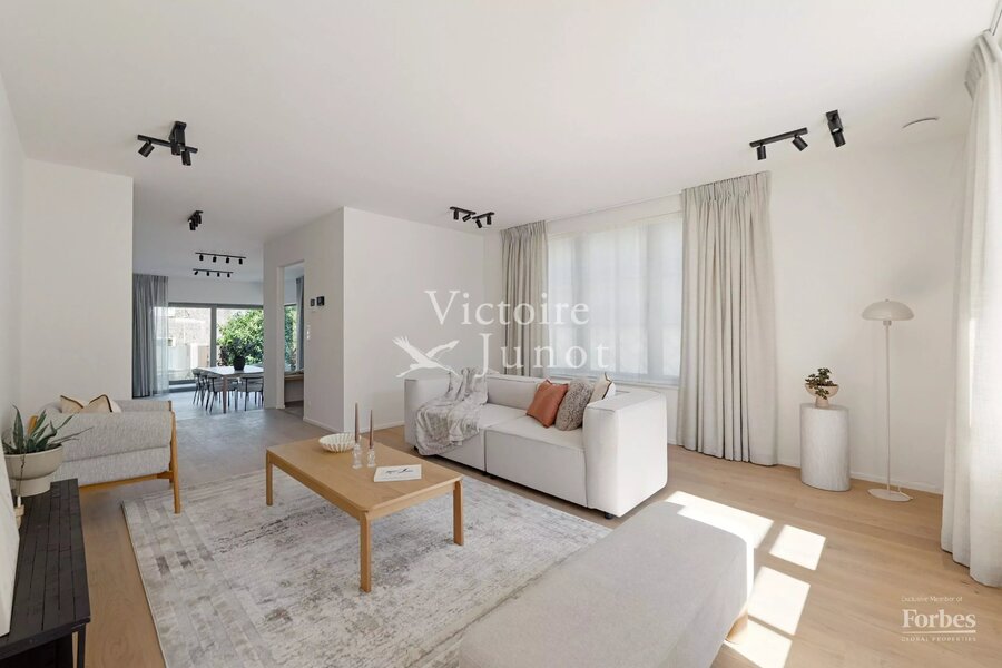 Victoire-Junot presenteert u : Woluwe-Saint-Lambert, in een bevoorrechte omgeving (park, vervoer, winkels, scholen) – dit prachtige nieuwe huis biedt u ± 300 m² woonruimte. Op de begane grond grote ontvangstruimtes met toegang tot het terras en de tuin, super uitgeruste keuken met eethoek. Op de eerste verdieping, hoofdsuite met dressing en badkamer + 2 andere slaapkamers met 1 douchekamer; op de tweede verdieping, 3 andere slaapkamers + 1 douchekamer. In de kelder: kelders, een wijnkelder, een wasruimte, stookruimte. Garage voor 2 auto's. Laatste isolatietechnologieën (geothermie, fotovoltaïsche panelen, regenwaterreservoir, waterontharder…). EPC: A. Voor meer informatie: www.victoire.be