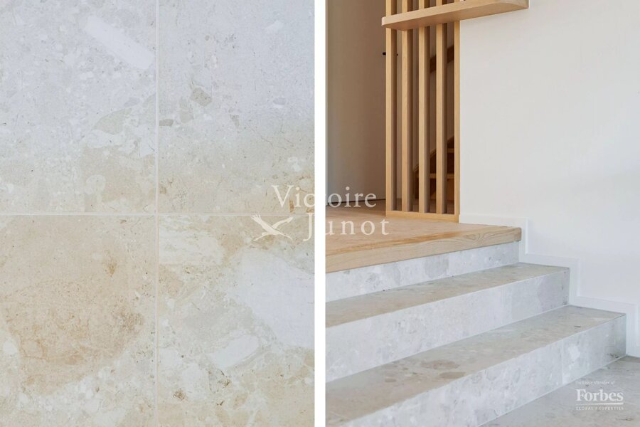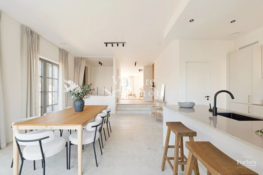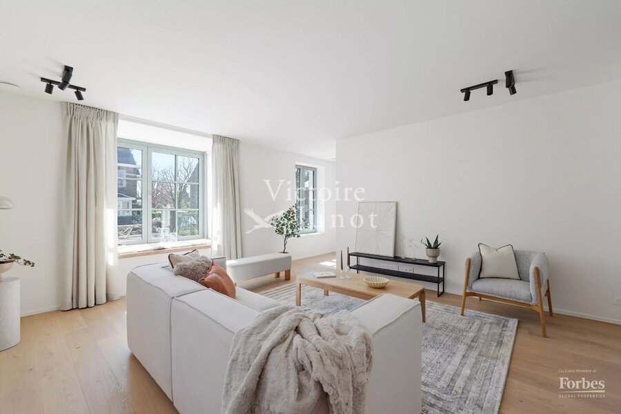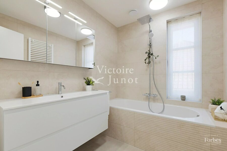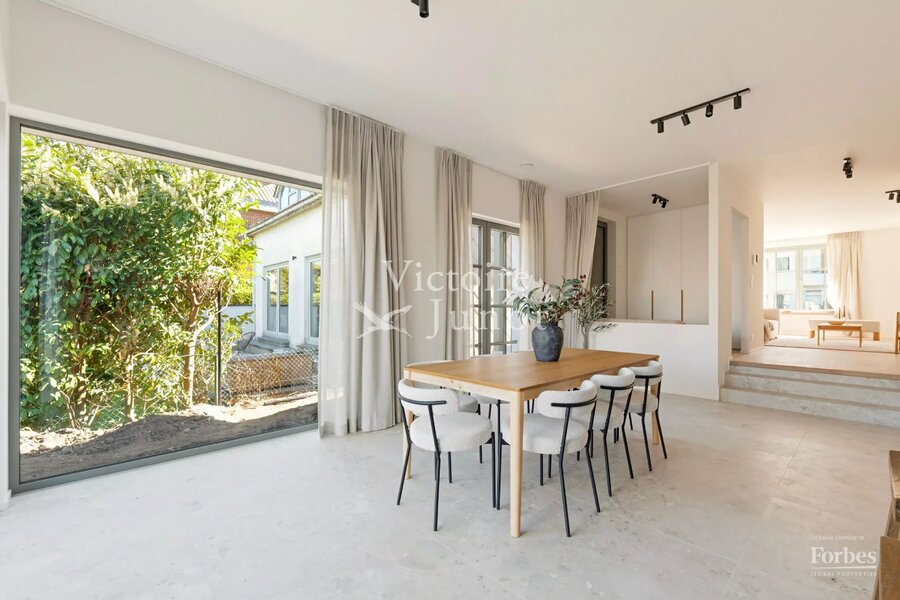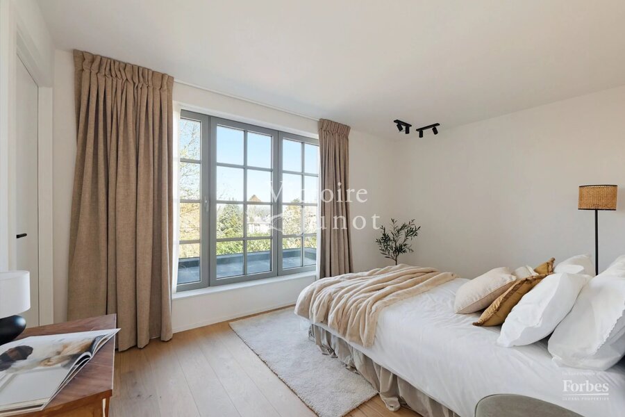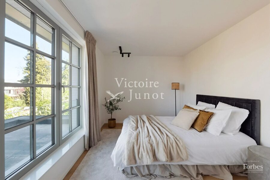 Victoire-Junot presenteert u : Woluwe-Saint-Lambert, in een bevoorrechte omgeving (park, vervoer, winkels, scholen) – dit prachtige nieuwe huis biedt u ± 300 m² woonruimte. Op de begane grond grote ontvangstruimtes met toegang tot het terras en de tuin, super uitgeruste keuken met eethoek. Op de eerste verdieping, hoofdsuite met dressing en badkamer + 2 andere slaapkamers met 1 douchekamer; op de tweede verdieping, 3 andere slaapkamers + 1 douchekamer. In de kelder: kelders, een wijnkelder, een wasruimte, stookruimte. Garage voor 2 auto's. Laatste isolatietechnologieën (geothermie, fotovoltaïsche panelen, regenwaterreservoir, waterontharder…). EPC: A. Voor meer informatie: www.victoire.be