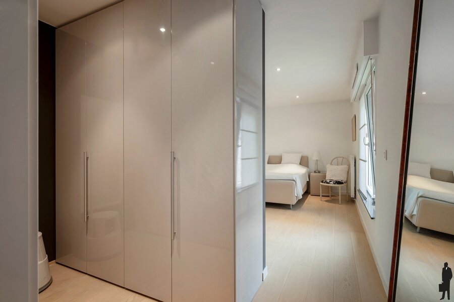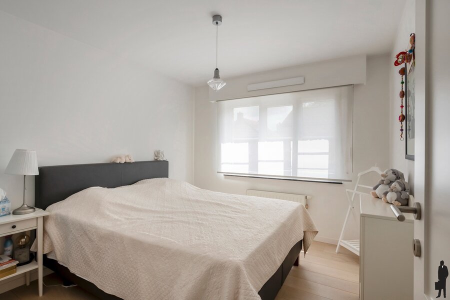 - Een eerste slaapkamer, momenteel ingericht als bureau, volledig ingemaakt en parketvloer