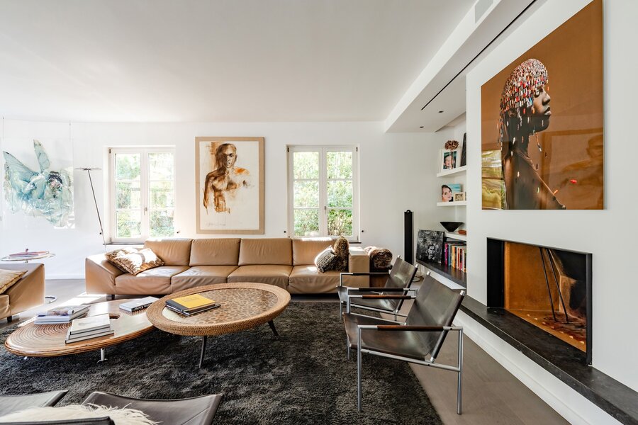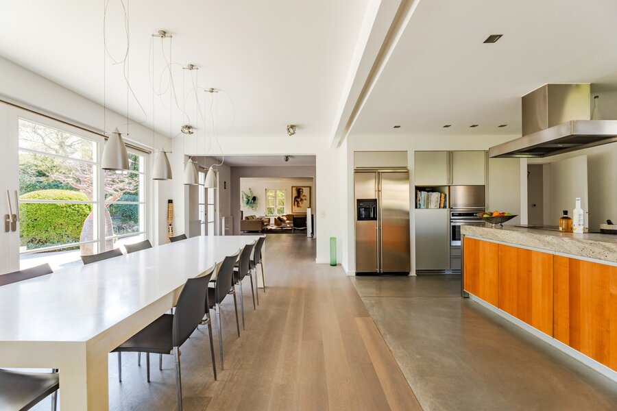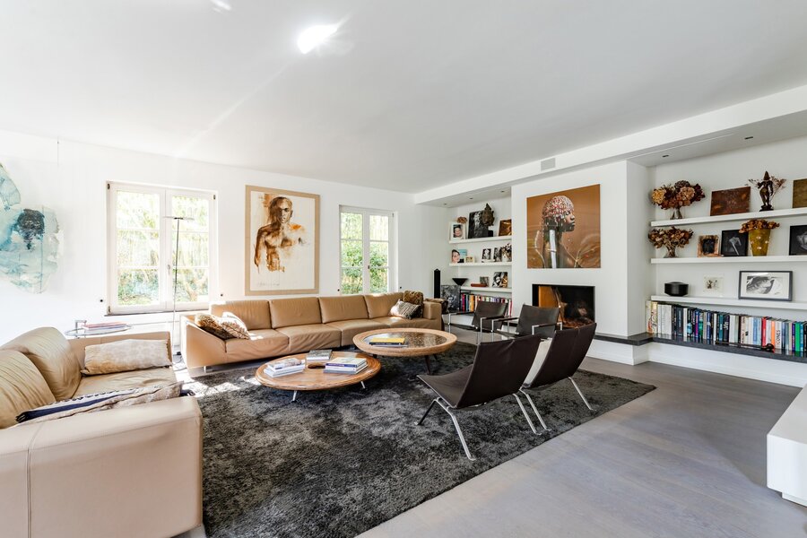 De begane grond heeft ruime ontvangstruimten die uitkomen op het terras en de tuin, een volledig uitgeruste keuken en een studeerkamer. Boven zijn vijf slaapkamers en drie badkamers, waaronder een grote oudersuite.