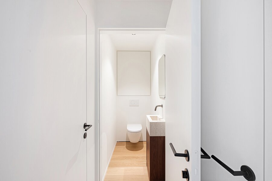 De renovatie werd gerealiseerd in samenwerking met architectenbureau Vanhoorn – Maeckelbergh en getuigt van een doordachte materiaalkeuze en een consequente afwerking.
