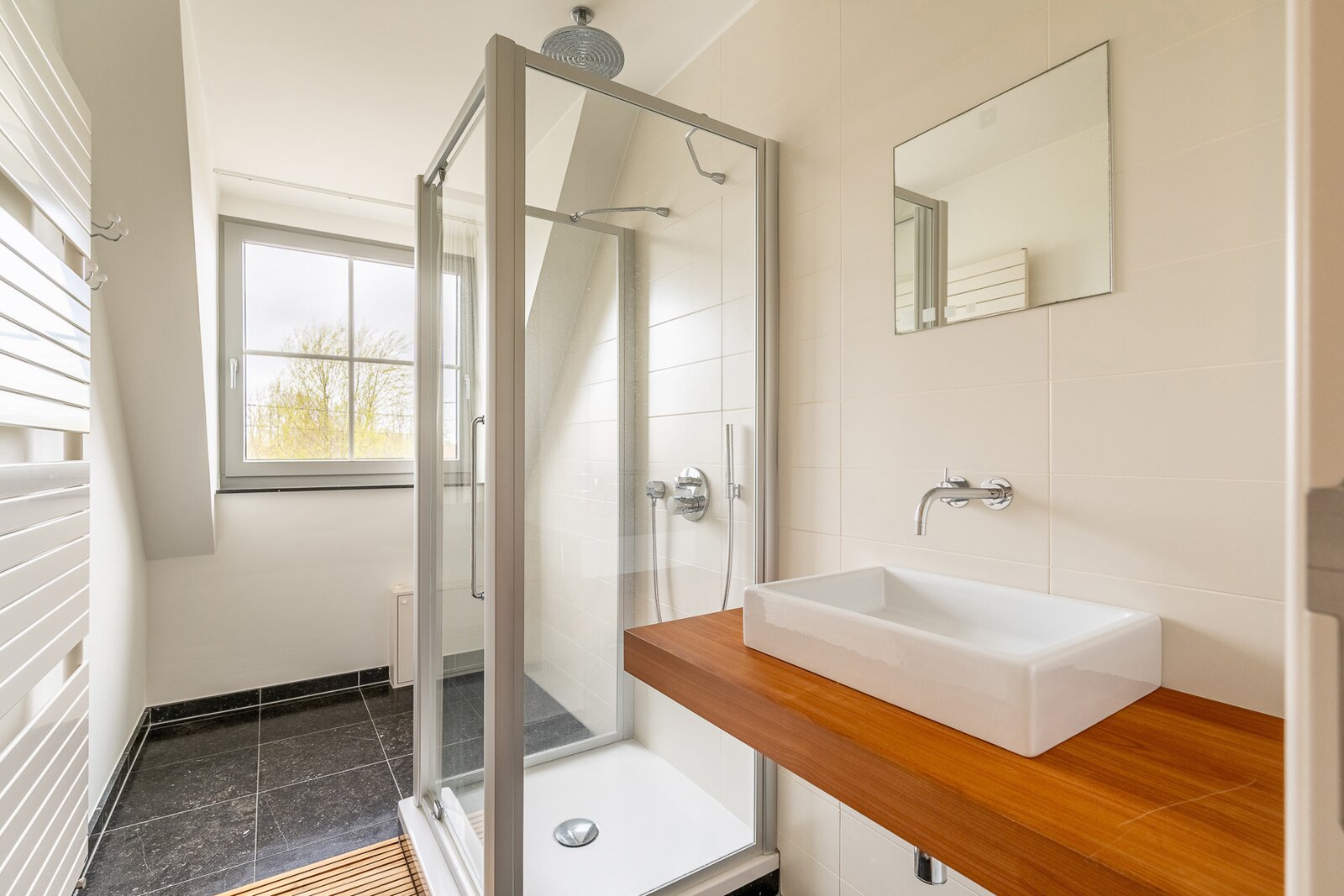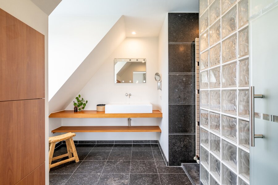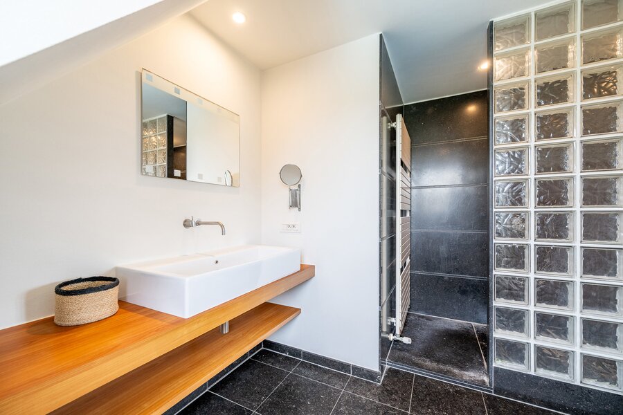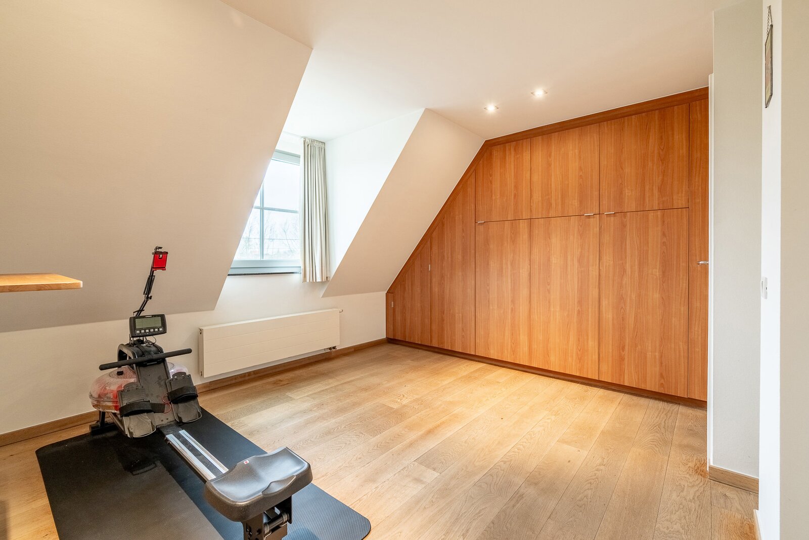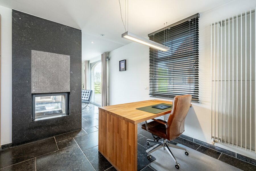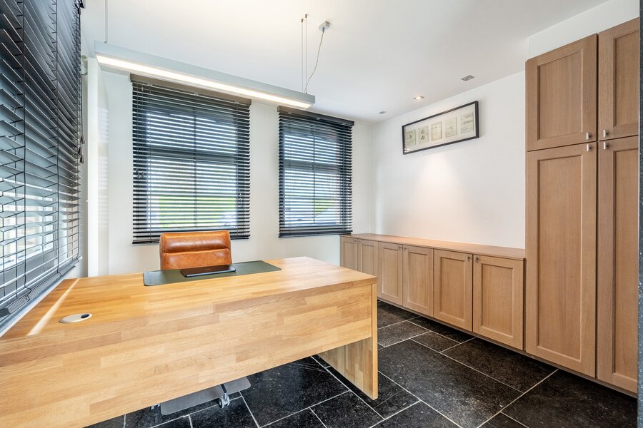 De woning beschikt over een ruime inpandige garage met daarboven een extra verdieping, die perfect kan worden ingericht als vierde slaapkamer met badkamer, bureau of hobbyruimte.