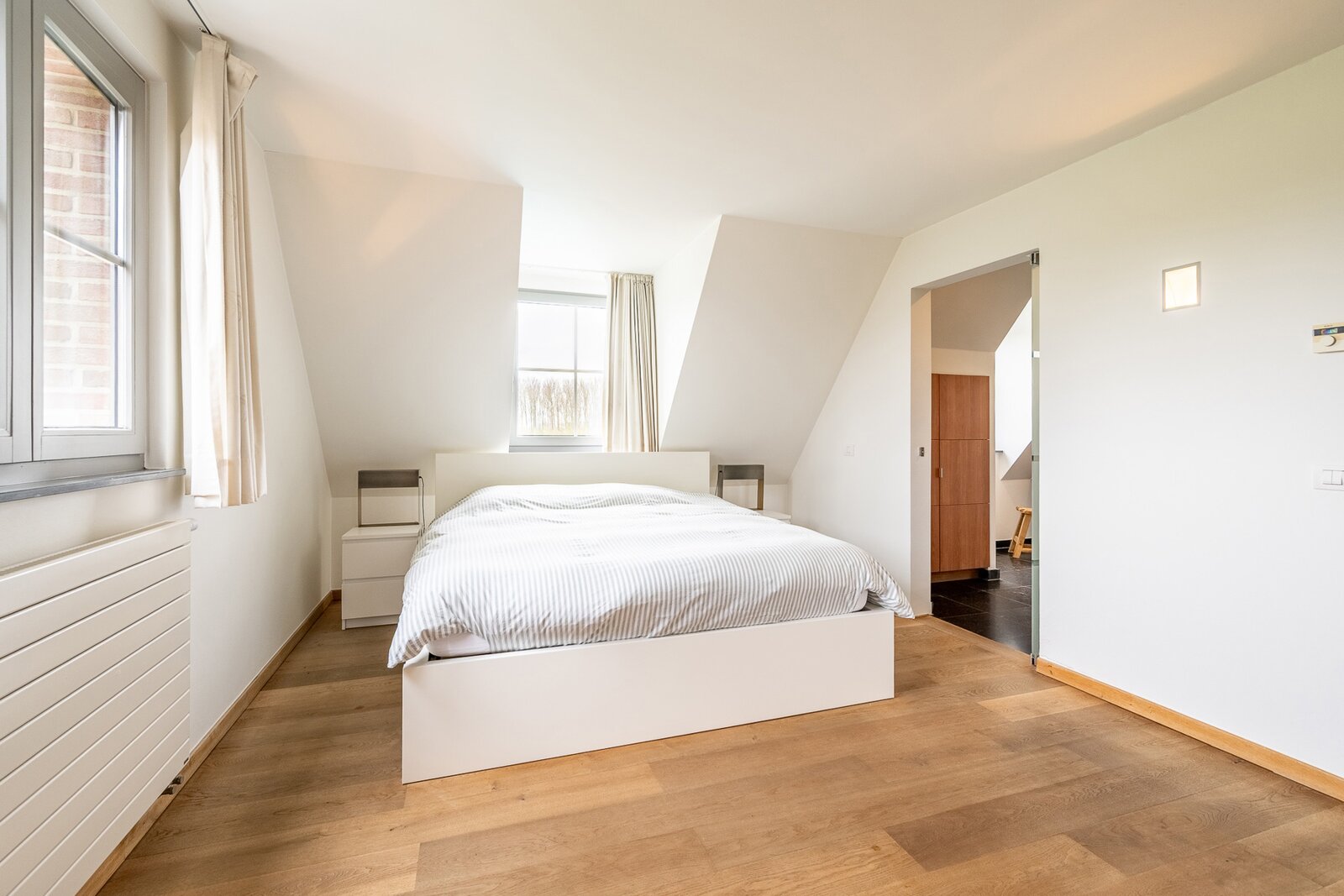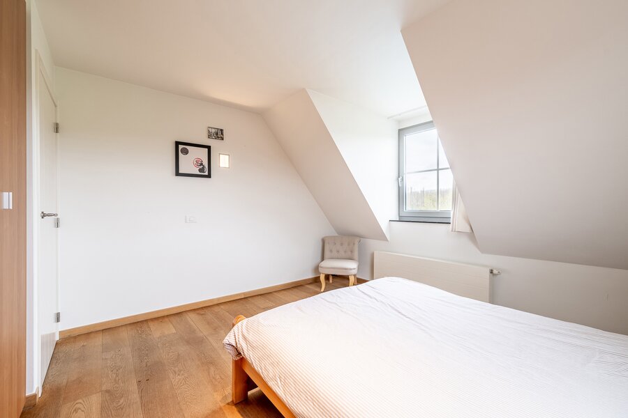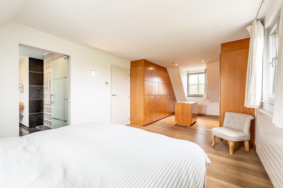 Op de eerste verdieping bevinden zich drie volwaardige slaapkamers, waaronder een master bedroom met dressing en en-suite badkamer. De twee overige slaapkamers maken gebruik van een gedeelde douchekamer.
