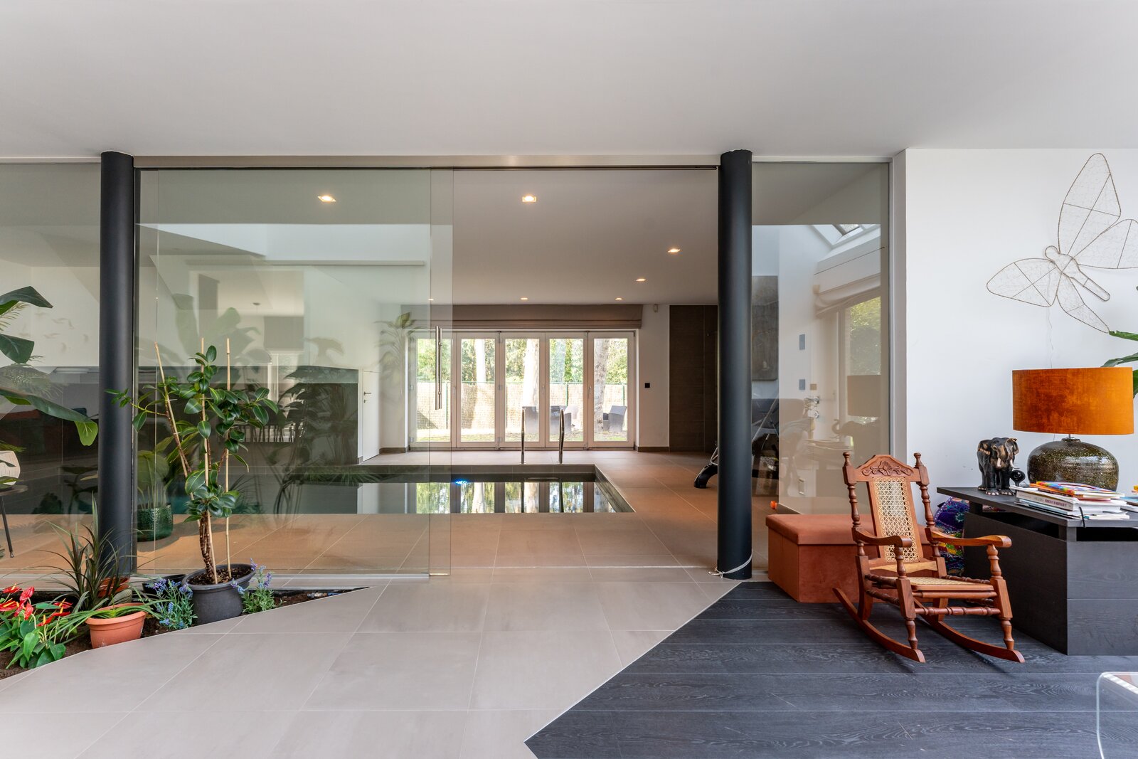Binnen treft u een warme, lichtrijke leefomgeving met een echte leefkeuken, aangevuld met veel maatwerk en ingebouwde kasten. De centrale verwarming op aardgas, conforme elektriciteit en geïntegreerde muziekinstallatie zorgen voor extra gebruiksgemak. Bovendien is er een verwarmd binnenzwembad met zandfilter.