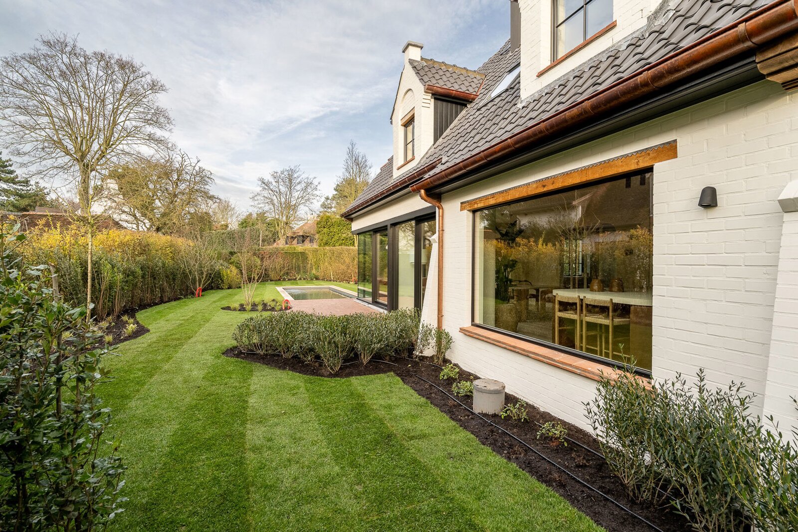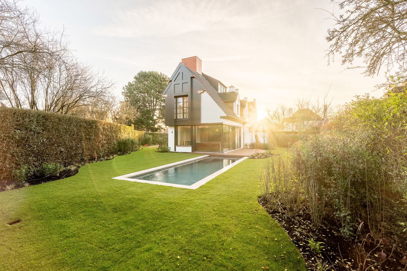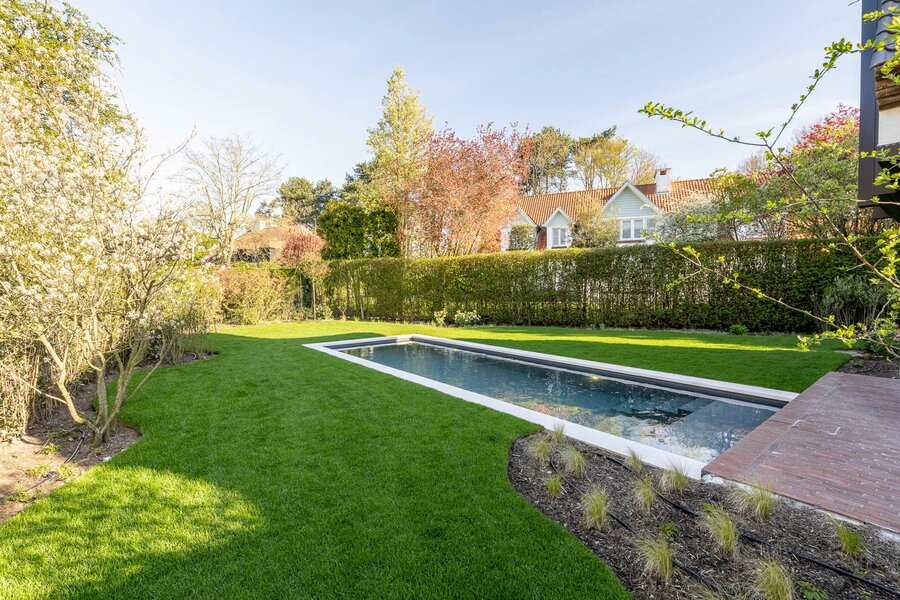 De zonnig georiënteerde tuin met zwembad vormt een oase van rust en maakt het geheel compleet.
