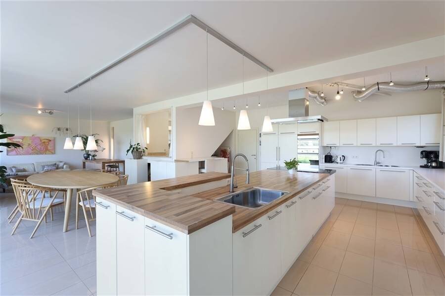 + Praktisch ingerichte keuken met kookeiland, zeer veel opbergruimte en voorzien van alle comfort