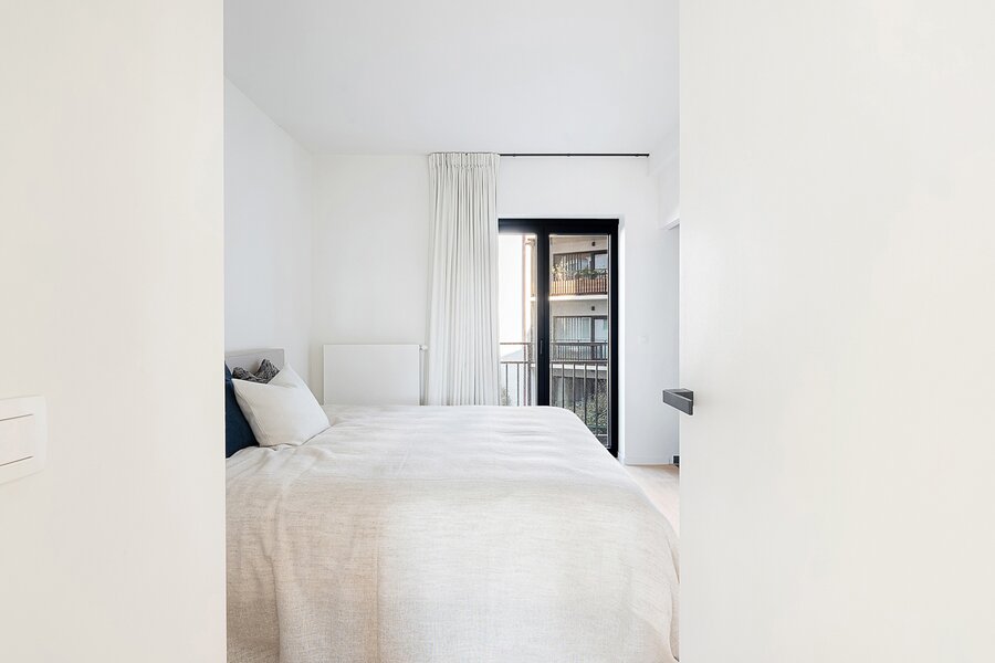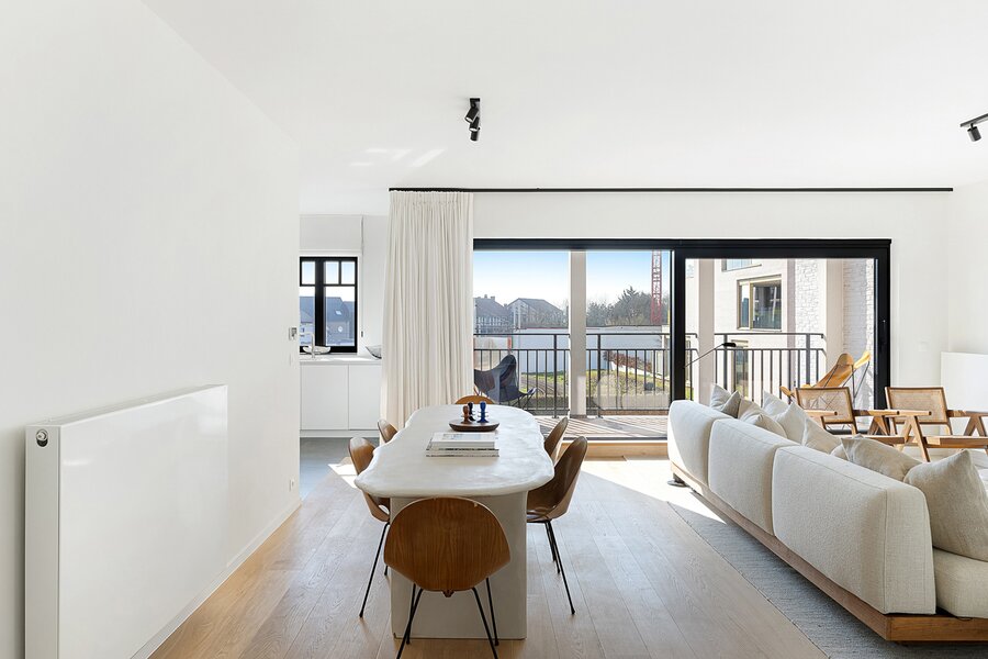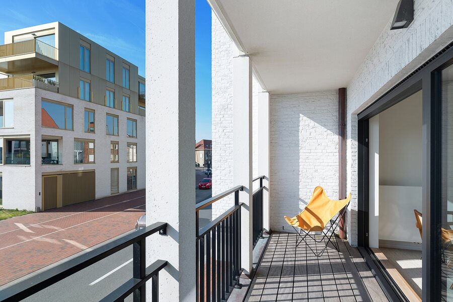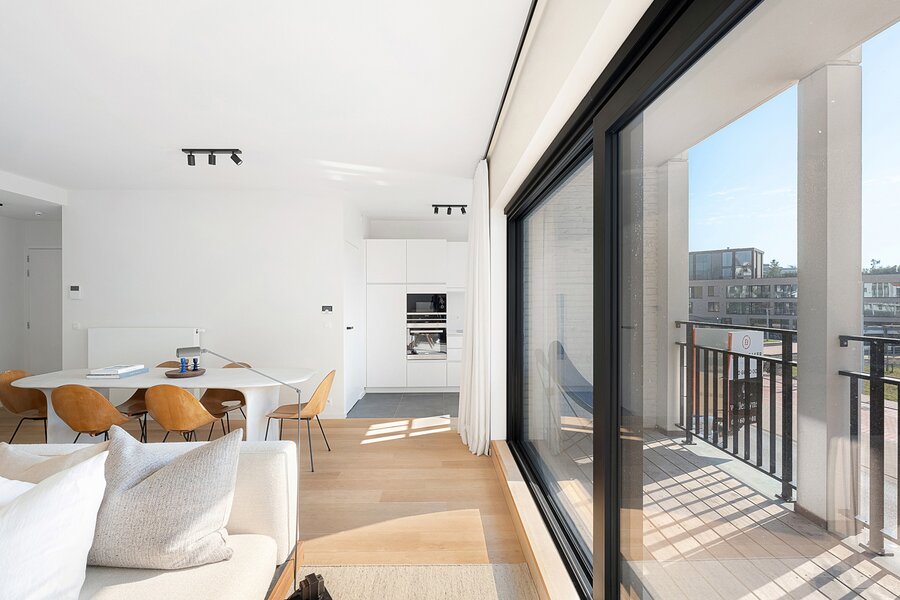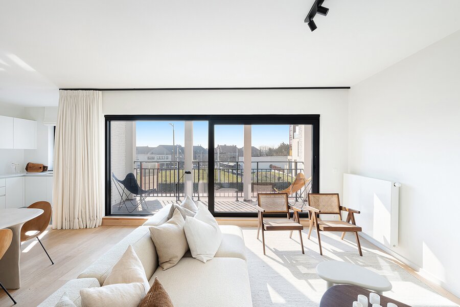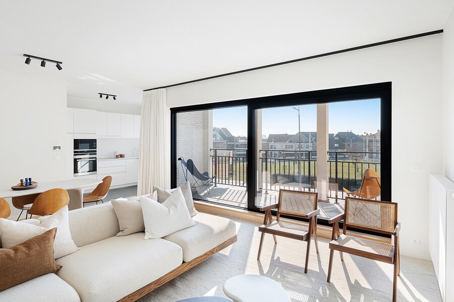 Lichtrijk en gezellig appartement in de recent gebouwde residentie "Crown" (2023) op wandelafstand van het bruisende winkelcentrum, het station en de zee. Indeling: inkomhal met vestiaire en wc. Lichtrijke leefruimte met open zicht en mooi zonnig terras. Open keuken voorzien van alle comfort. Praktische berging. 1 ruime slaapkamer met eigen douchekamer en toegang tot terras. 2de slaapkamer met eigen badkamer. Beide slaapkamers zijn voorzien van ingemaakte kasten. Mogelijkheid tot aankoop 1 autostaanplaats of overname huurcontract 1 garagebox in de residentie. Interessante investering met kwalitatieve afwerking! Bezoek gaarne na afspraak bij één van onze kantoren.