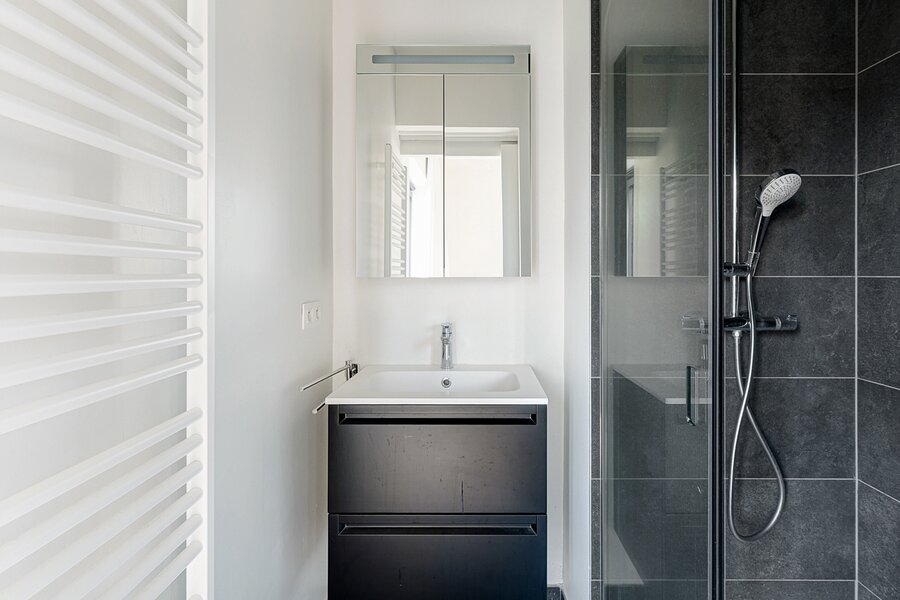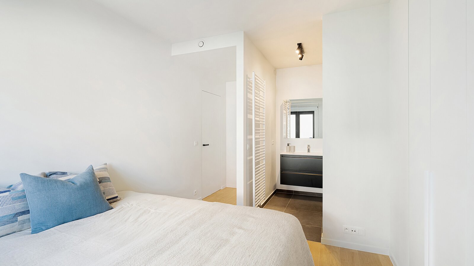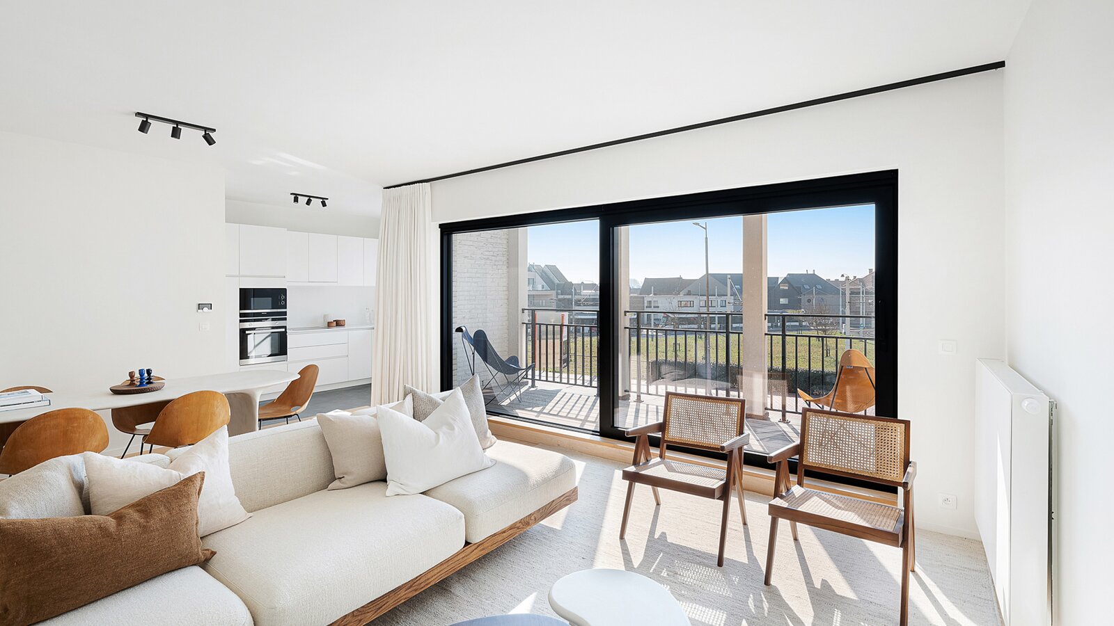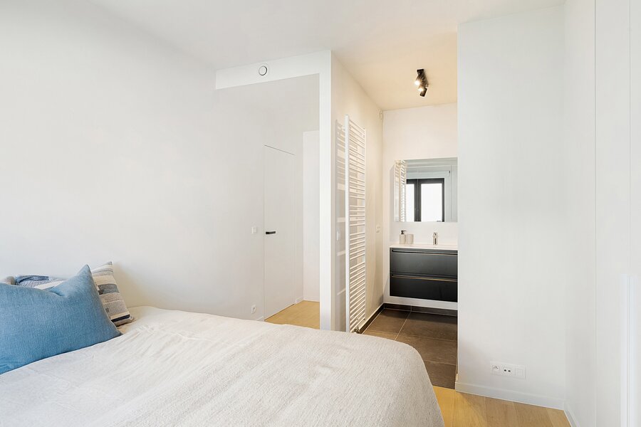Lichtrijk en gezellig appartement in de recent gebouwde residentie "Crown" (2023) op wandelafstand van het bruisende winkelcentrum, het station en de zee. Indeling: inkomhal met vestiaire en wc. Lichtrijke leefruimte met open zicht en mooi zonnig terras. Open keuken voorzien van alle comfort. Praktische berging. 1 ruime slaapkamer met eigen douchekamer en toegang tot terras. 2de slaapkamer met eigen badkamer. Beide slaapkamers zijn voorzien van ingemaakte kasten. Mogelijkheid tot aankoop 1 autostaanplaats of overname huurcontract 1 garagebox in de residentie. Interessante investering met kwalitatieve afwerking! Bezoek gaarne na afspraak bij één van onze kantoren.