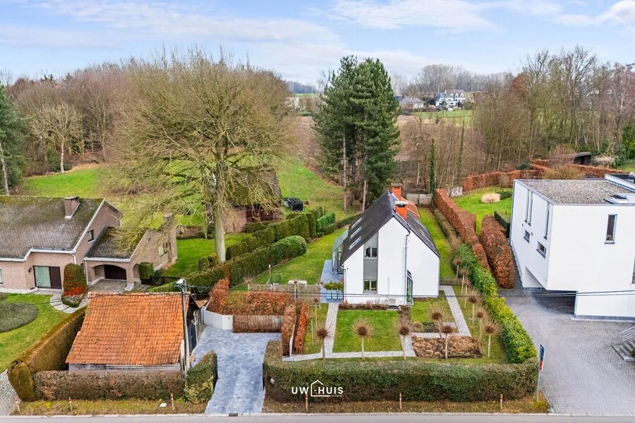 Op het verdiep bevinden zich drie ruime slaapkamers en een moderne badkamer met inloopdouche. De woning is verder uitgerust met twee toiletten, voldoende opbergruimte, een oprit en hedendaags comfort zoals vloerverwarming, een condensatieketel, dubbele beglazing en een sfeervolle houtkachel.