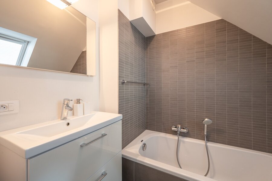 Zonnig en ruim duplex appartement met zuidgericht terras op wandelafstand van de winkels en het strand. Indeling: inkomhal met gastentoilet en vestiaire (met aansluiting voor combi wasmachine/droogkast). Technische ruimte/berging. Lichtrijke leefruimte met toegang tot het zonneterras. Volledig ingerichte keuken voorzien van alle apparatuur met eetplaats en toegang tot het terras achteraan. Berging. Op de verdieping: 1ste ruime slaapkamer met ingemaakte kasten en aansluitende badkamer (bad, lavabo en toilet). 2de slaapkamer met ingemaakte kasten. Douchekamer. Toilet op de nachthal. Privatieve kelder. Kleinschalige residentie met 1 appartement per verdiep vlakbij de zee. Exclusief te koop bij Knokke Real Estate. Contacteer ons om een bezoek in te plannen.