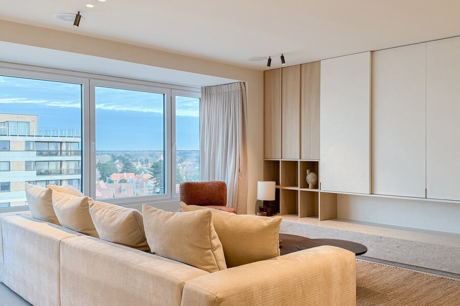 Op een van de meest emblematische pleinen van Knokke-Zoute bevindt zich dit smaakvol gerenoveerde appartement met open zicht over het Albertplein en de zee.