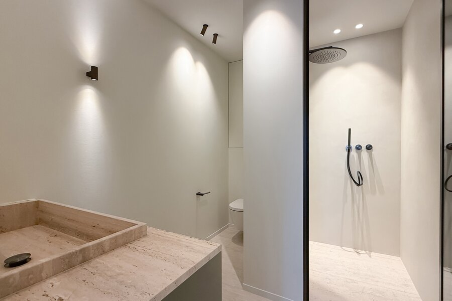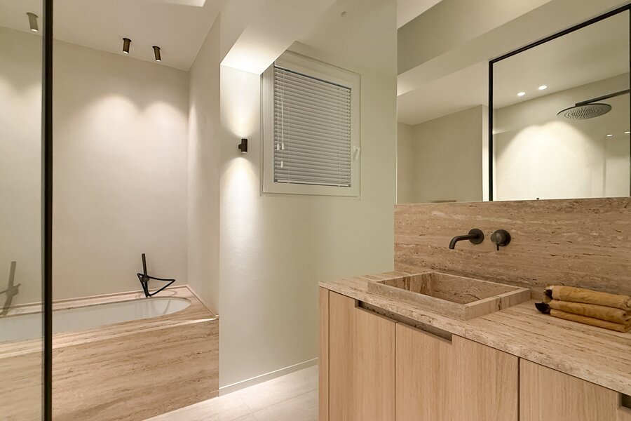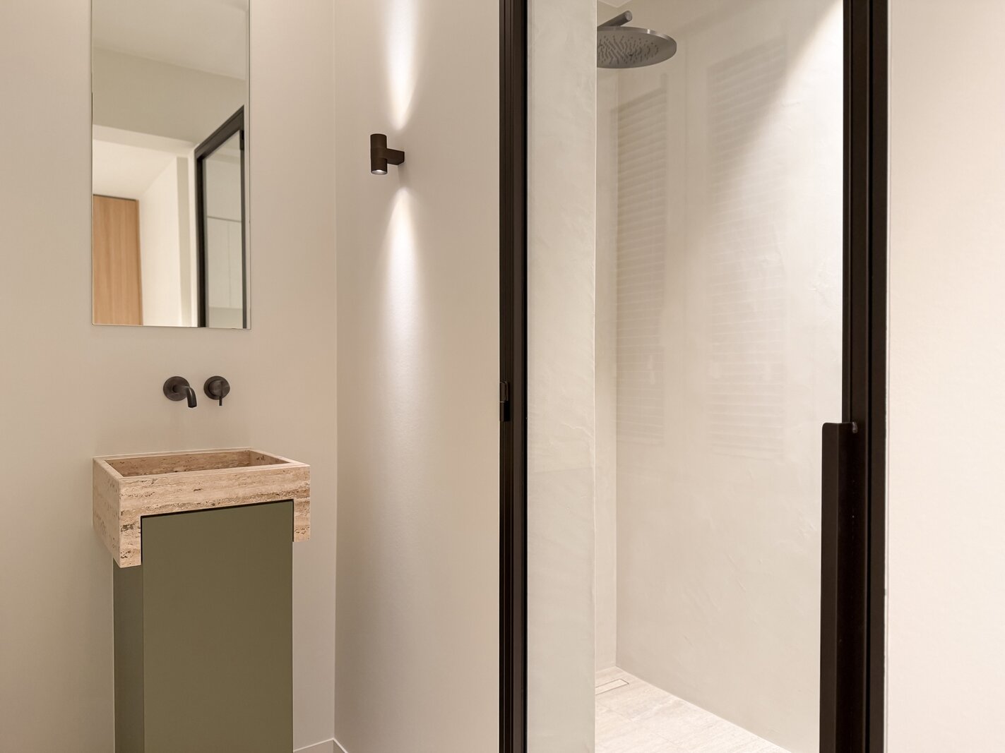 De renovatie werd uitgevoerd met oog voor detail en hoogwaardige materialen zoals parket en natuursteen, wat zorgt voor een tijdloze en elegante uitstraling. De indeling is doordacht, met een mooie balans tussen open leefruimtes en comfortabele privatieve zones.
