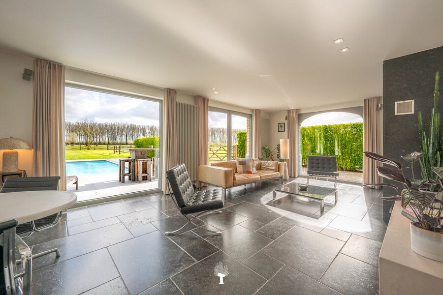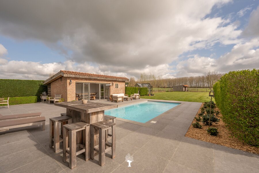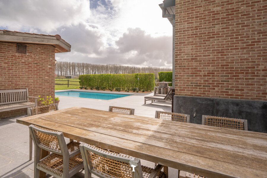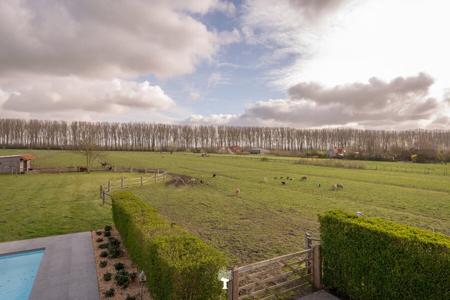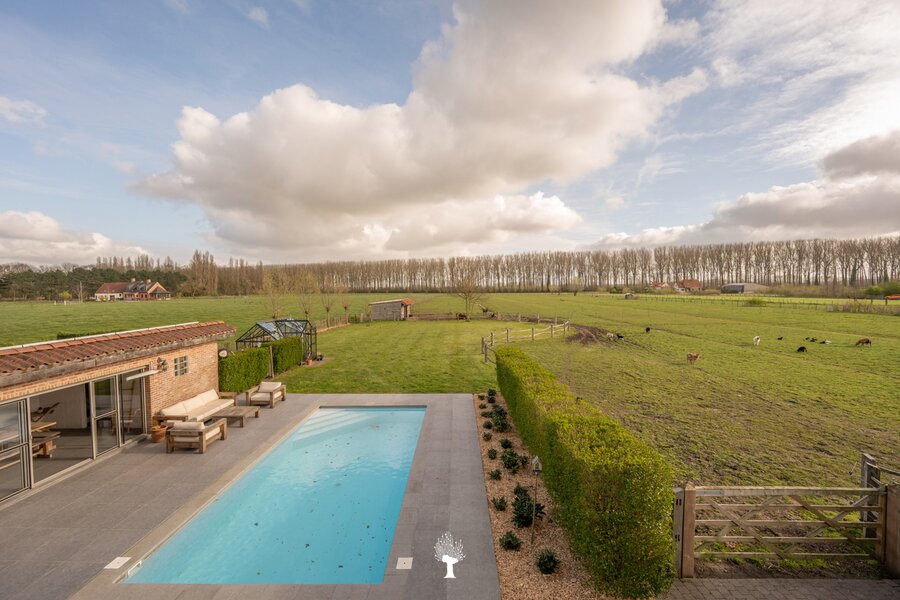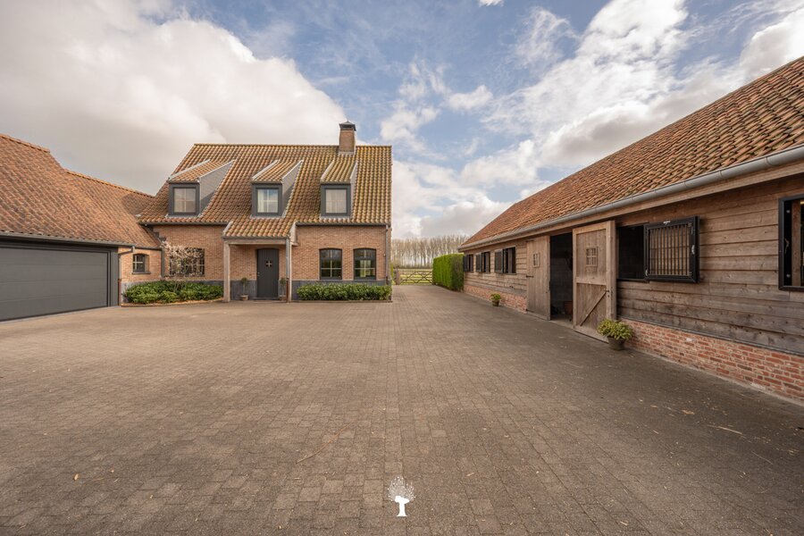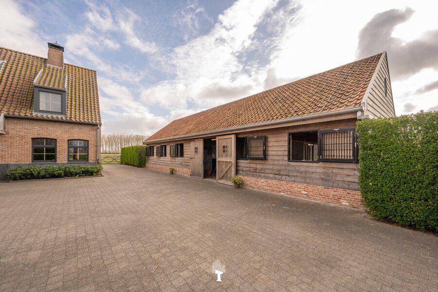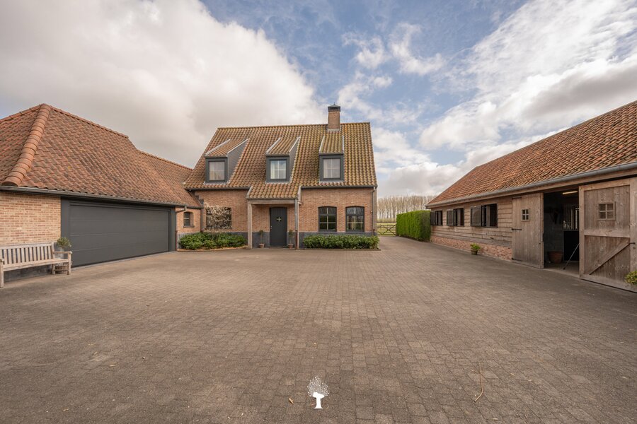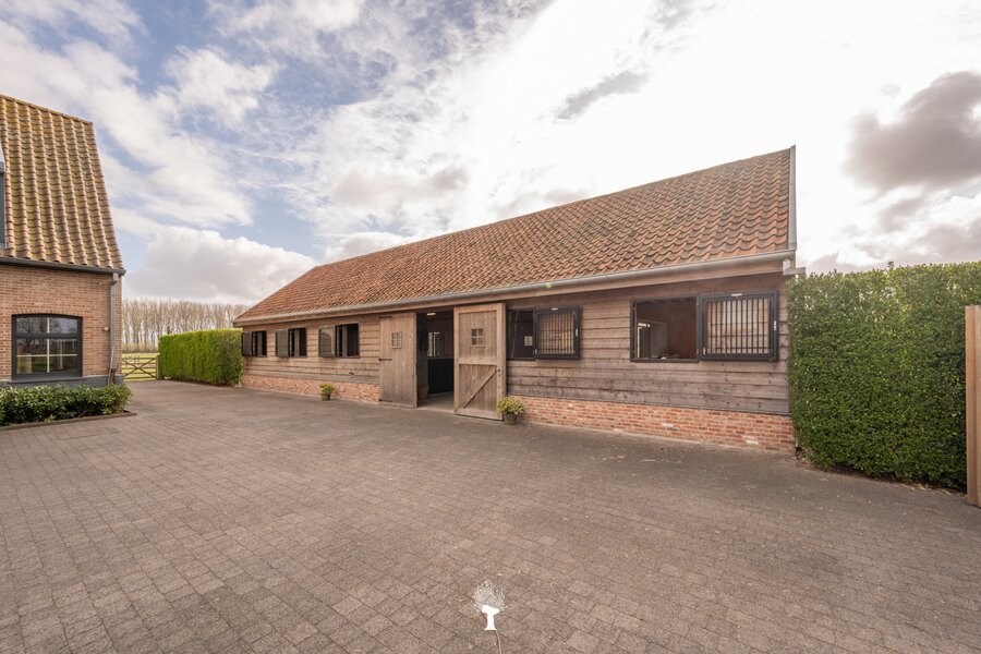 Prachtig landhuis met paardenstallen gelegen in het pittoreske Moerkerke, op 15 minuten van Knokke, op een perceel van ongeveer 2,05 hectare. Deze villa is voorzien van alle comfort. Samenstelling: inkomhal met gastentoilet. Ruime, zonnige woonkamer met open haard en zicht op het zwembad, de tuin en de weilanden rondom. Aparte bureau. Mooie keuken voorzien van alle huishoudtoestellen (MIELE) met ontbijthoek. Bijkeuken/Wasplaats. Inpandige garage voor 2 wagens. Eerste verdieping: Master bedroom met dressing en aansluitende douchekamer. Slaapkamer 2 en 3 voor dubbel bed. Praktische douchekamer. Toegankelijke zolder. Tweede grote zolder boven de garage. Poolhouse/Overdekt terras met douche & toilet. 5 Paardenstallen. Prachtige zichten.Voor de liefhebbers van rust, privacy en ruimte is deze villa een absolute aanrader. Bezoek gaarne na afspraak op onze kantoren.