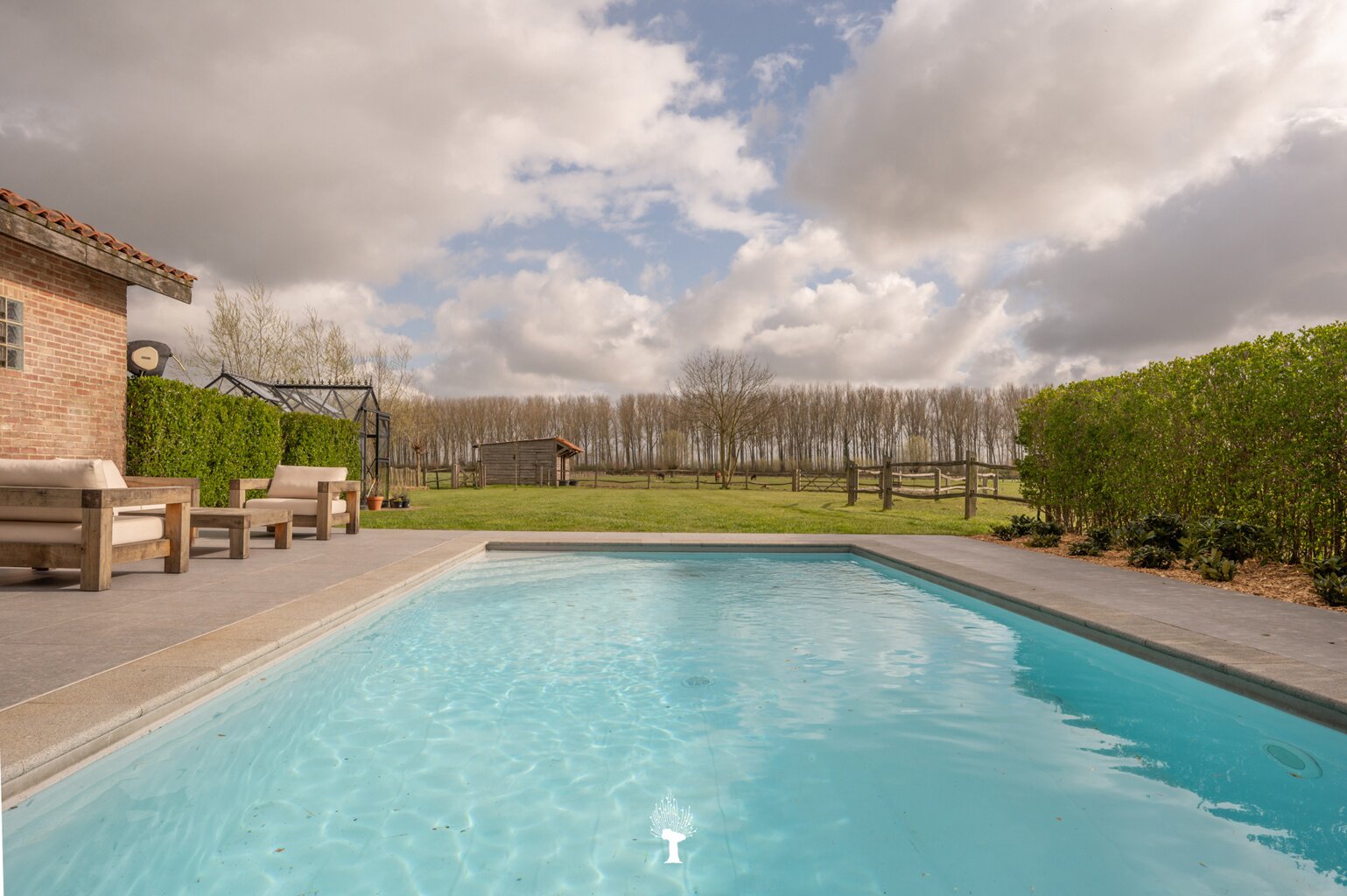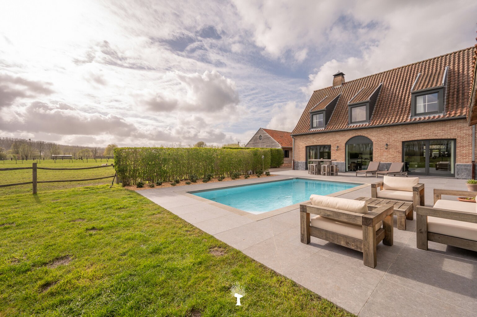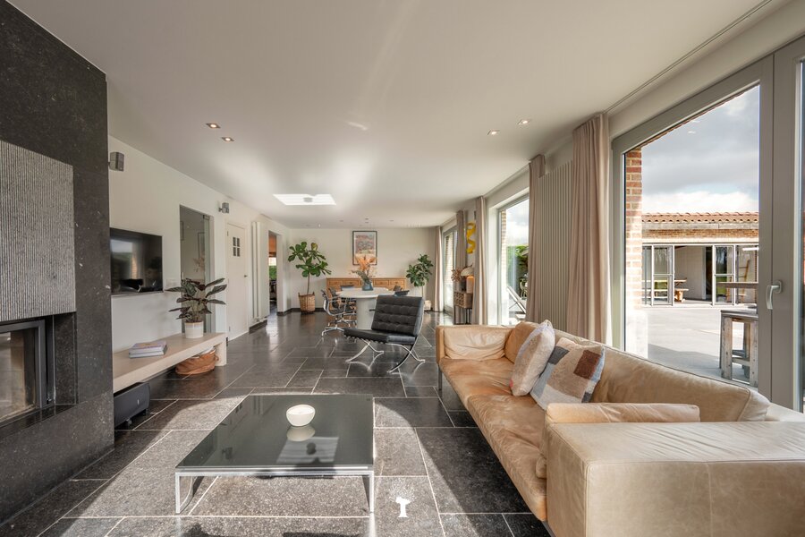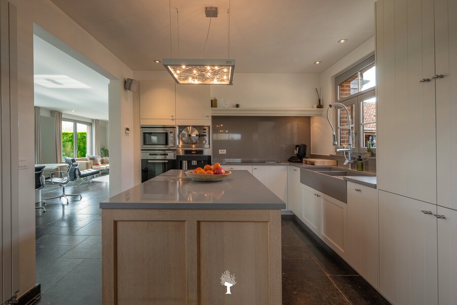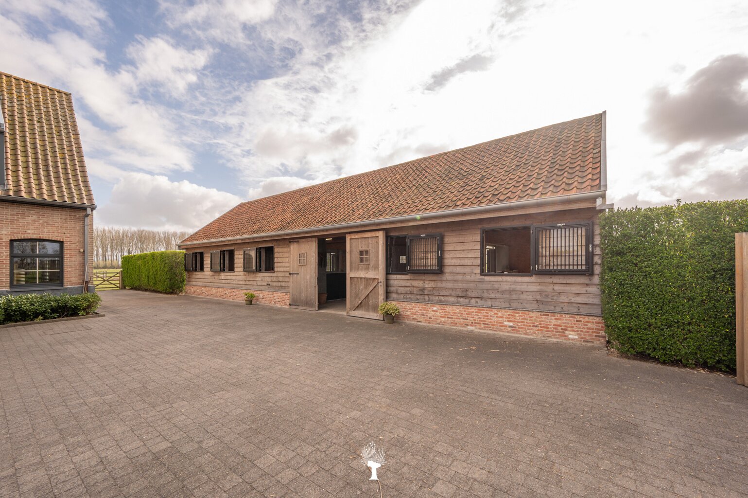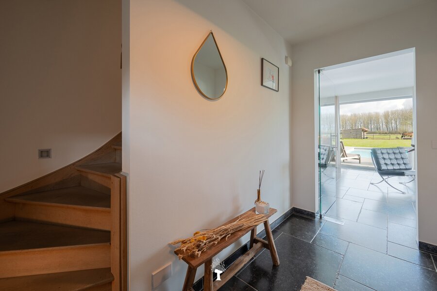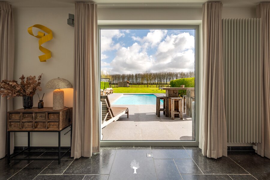 Prachtig landhuis met paardenstallen gelegen in het pittoreske Moerkerke, op 15 minuten van Knokke, op een perceel van ongeveer 2,05 hectare. Deze villa is voorzien van alle comfort. Samenstelling: inkomhal met gastentoilet. Ruime, zonnige woonkamer met open haard en zicht op het zwembad, de tuin en de weilanden rondom. Aparte bureau. Mooie keuken voorzien van alle huishoudtoestellen (MIELE) met ontbijthoek. Bijkeuken/Wasplaats. Inpandige garage voor 2 wagens. Eerste verdieping: Master bedroom met dressing en aansluitende douchekamer. Slaapkamer 2 en 3 voor dubbel bed. Praktische douchekamer. Toegankelijke zolder. Tweede grote zolder boven de garage. Poolhouse/Overdekt terras met douche & toilet. 5 Paardenstallen. Prachtige zichten.Voor de liefhebbers van rust, privacy en ruimte is deze villa een absolute aanrader. Bezoek gaarne na afspraak op onze kantoren.