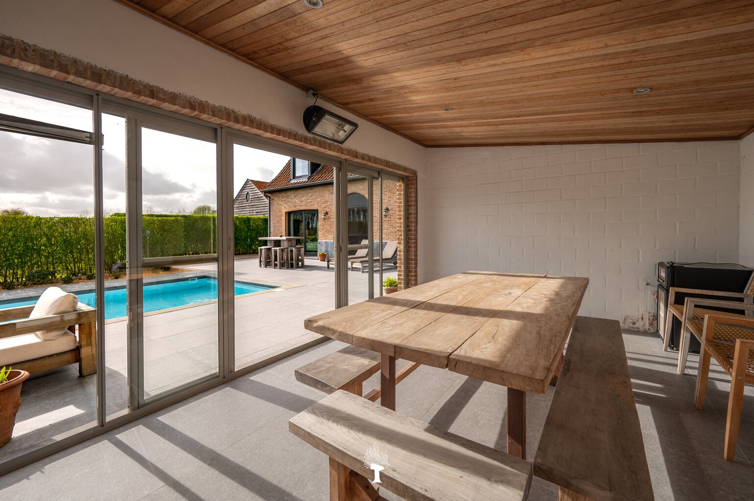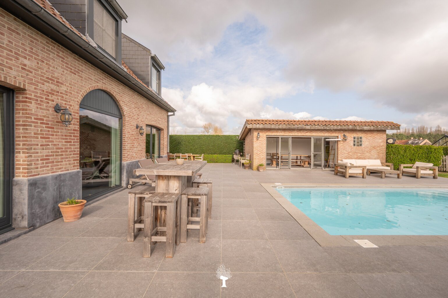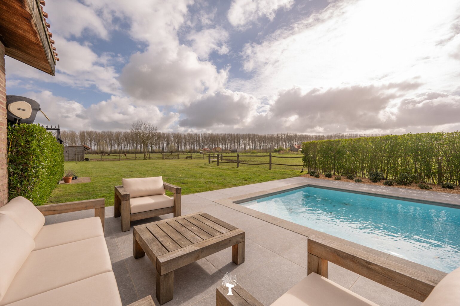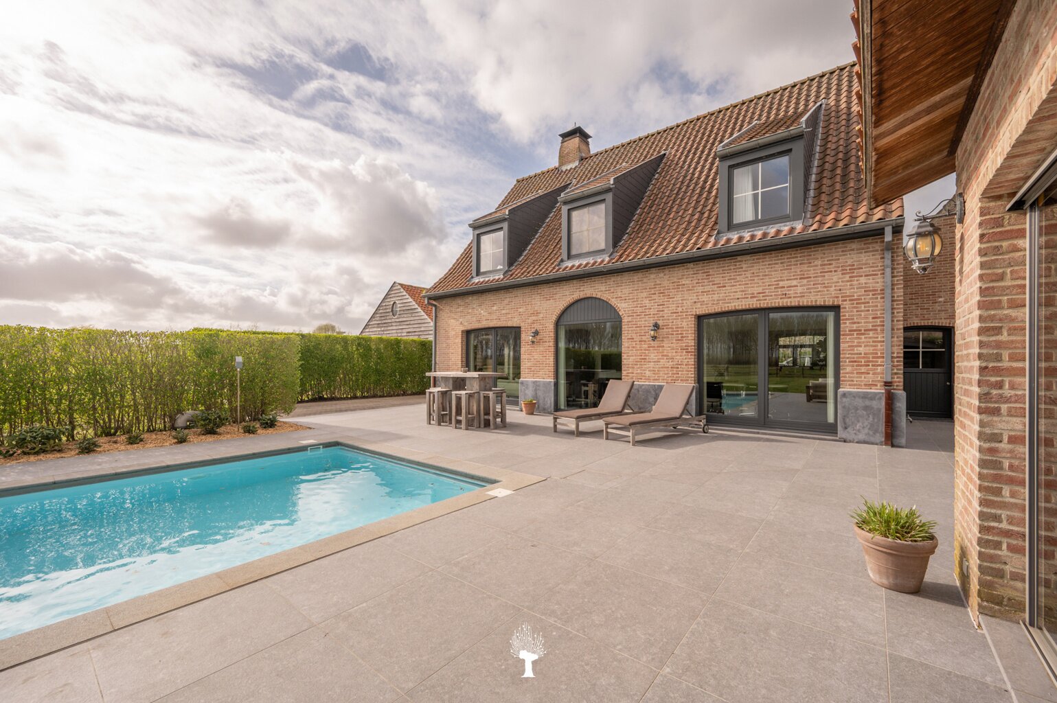 Prachtig landhuis met paardenstallen gelegen in het pittoreske Moerkerke, op 15 minuten van Knokke, op een perceel van ongeveer 2,05 hectare. Deze villa is voorzien van alle comfort. Samenstelling: inkomhal met gastentoilet. Ruime, zonnige woonkamer met open haard en zicht op het zwembad, de tuin en de weilanden rondom. Aparte bureau. Mooie keuken voorzien van alle huishoudtoestellen (MIELE) met ontbijthoek. Bijkeuken/Wasplaats. Inpandige garage voor 2 wagens. Eerste verdieping: Master bedroom met dressing en aansluitende douchekamer. Slaapkamer 2 en 3 voor dubbel bed. Praktische douchekamer. Toegankelijke zolder. Tweede grote zolder boven de garage. Poolhouse/Overdekt terras met douche & toilet. 5 Paardenstallen. Prachtige zichten.Voor de liefhebbers van rust, privacy en ruimte is deze villa een absolute aanrader. Bezoek gaarne na afspraak op onze kantoren.