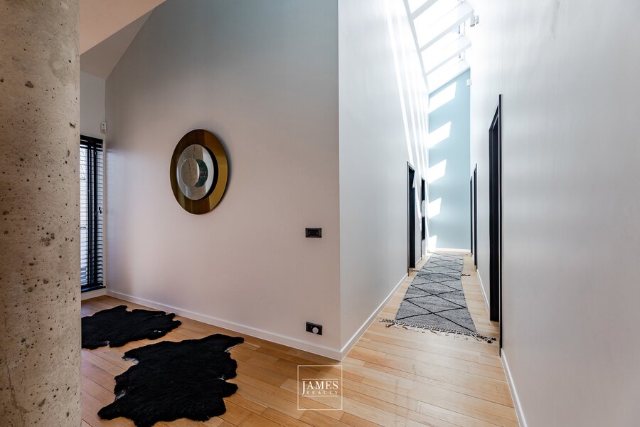 Grote hal met hoge plafonds, garderobe en toilet