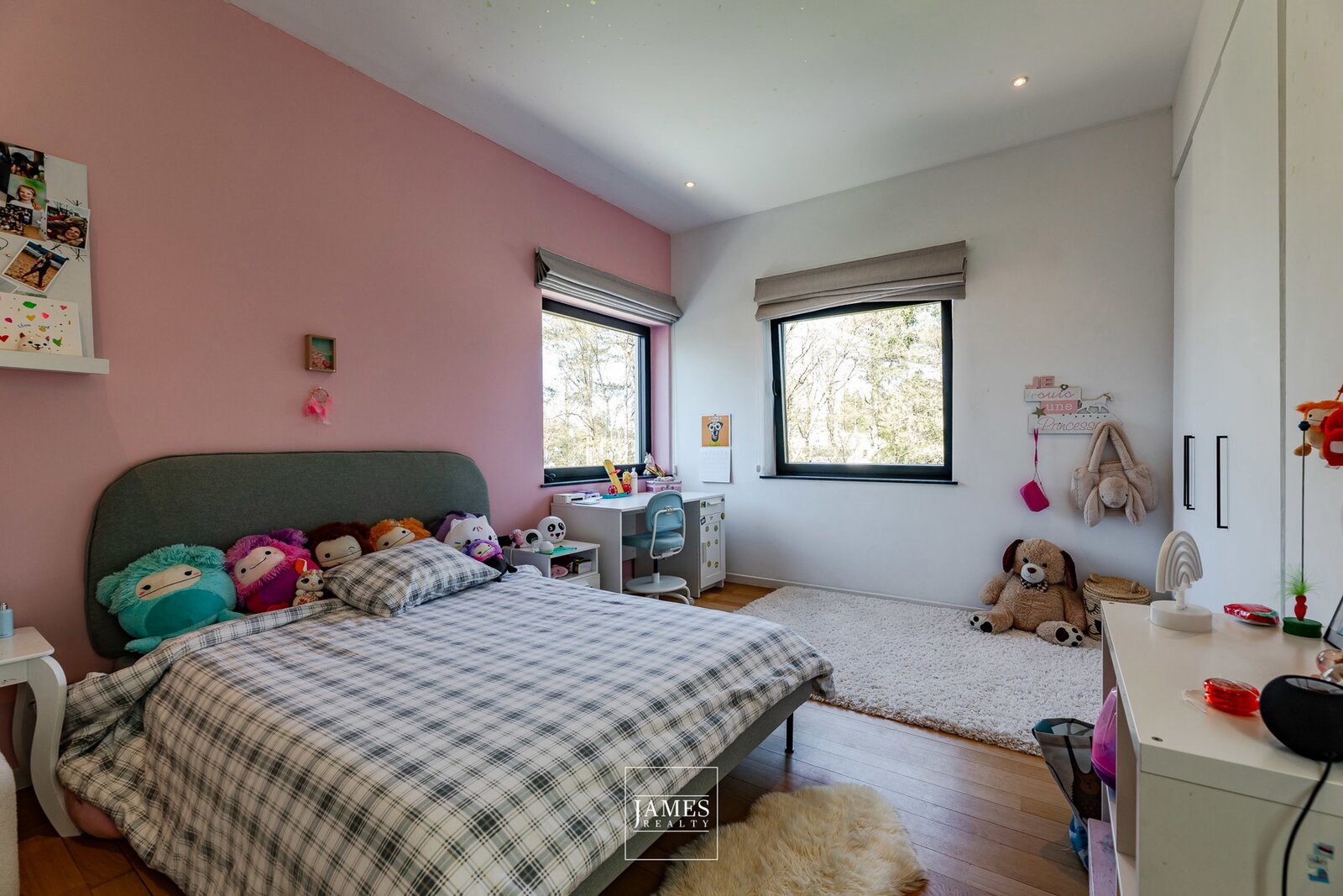 Een kindervleugel met een slaapkamer voorzien van ramen en een kinderbadkamer met toilet