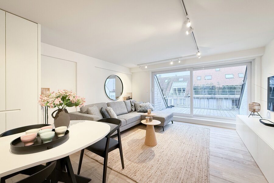 Stijlvol gerenoveerd duplex-appartement met 2 zonneterrassen, centraal gelegen op de Leopoldlaan...