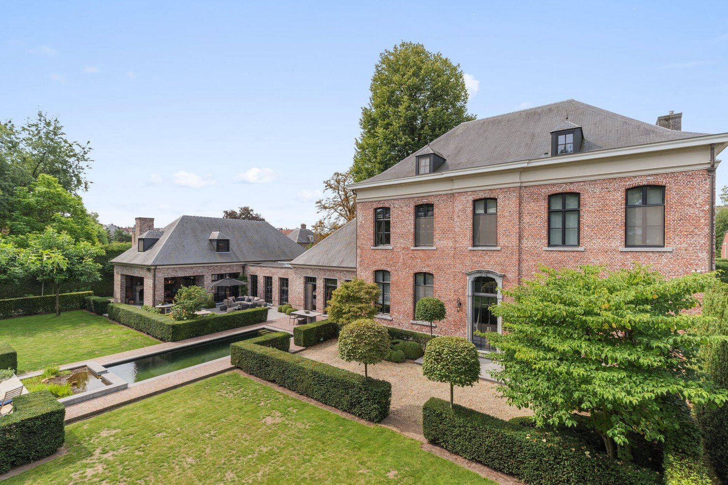 Buiten wordt de uitzonderlijke beleving naadloos doorgetrokken. De grote, unieke tuin is een oase van rust en privacy, met een elegante zwemvijver als blikvanger en een ruim overdekt terras voor stijlvolle outdoor living. Alles is afgewerkt met oog voor detail en hoogwaardige materialen, wat zorgt voor een verfijnde, coherente uitstraling doorheen de hele woning.