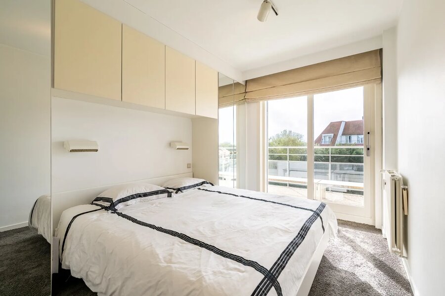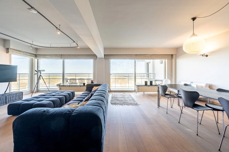 Uniek aanbod op de Wandeldijk in Het Zoute - Uitzonderlijk ruim appartement te koop in de prestigieuze residentie Duinhuis. Het appartement biedt prachtige terrassen en 4 ruime slaapkamers, waarvan één met frontaal zeezicht.