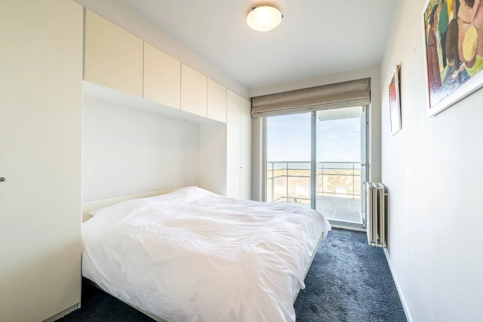 Inkomhal met vestiaire en gastentoilet. Ruime woonkamer met terras en panoramisch zeezicht. De ruimte bestaat uit een salon, eetkamer en een bureelhoek. Aangrenzende keuken. Aan de voorzijde bevindt zich een eerste slaapkamer met privatieve badkamer en uitzicht op zee. Aan de achterzijde drie dubbele slaapkamers, allen met toegang tot een groot terras op het zuiden, en twee badkamers. Wasruimte.