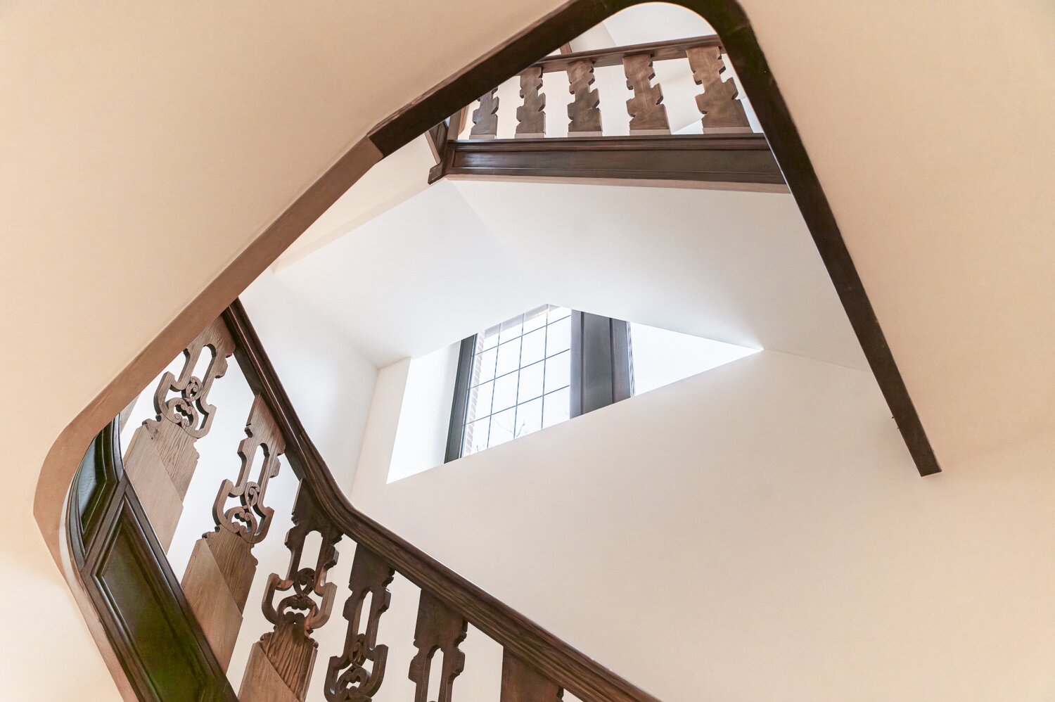 Bewonder meteen bij het binnenkomen de monumentale neo-Lodewijk XVI-trap.