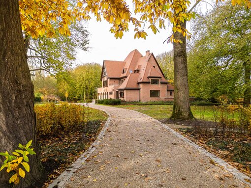 Erkervormige houten ramen, natuurstenen elementen en siersmeedwerk: aan de buitenkant van de villa verandert er amper iets.